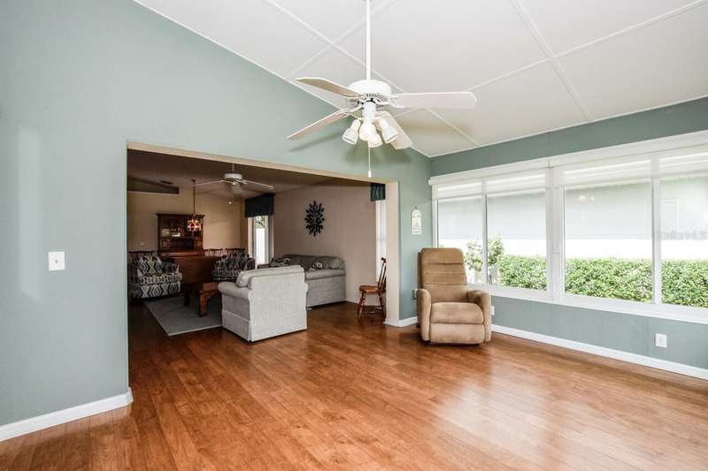 These Golf Course Front Villas located in The Villas of Somerset at Plantation Golf and Country Club rarely become available. Don't miss this opportunity to view this lovely 2 bedroom/2bath Stand alone Villa with sweeping golf course and lake views over multiple holes on the Bobcat Course in Plantation. Definitely a Ring Side Seat to watch the popular LPGA Ladies play their Qualifying Tournament every October from the Impact Glass Enclosed and AC Sunroom or the open side patio. This home has impact windows in almost all rooms of the house, both Bedrooms were just freshly painted and had new carpet installed. If Golf, Tennis, Pickleball or Fitness are your passion then membership at the Plantation is available and affordable on many levels. Located close to beaches, shopping, Wellen Park and the Atlanta Braves Spring Training Facility at Cool Today Park. Put this home at the Top of Your List today!