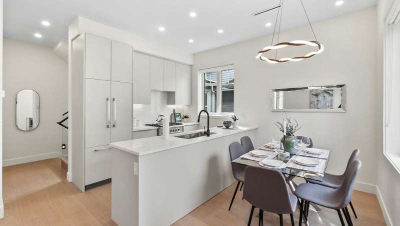 Dont miss this beautiful, character-inspired 3-bedroom, 3.5-bathroom rear duplex in Mount Pleasant. Meticulously crafted by Kingswood Real Estate. Featuring a bright and open main floor with 9' ceilings, chef-inspired kitchen with Fisher & Paykel appliances and mill-worked cabinetry and storage. Upstairs has 2 bedrooms including a spacious primary suite with ample storage and walk-through closet. The bottom floor has a separate entrance into the recreation room with another well-appointed bedroom and full bathroom. Great potential for an in-law suite, rental suite or airbnb revenue. The crawlspace provides lots of storage. Stay comfortable with radiant floor heating, AC, and on-demand hot water. The fenced back outdoor space is great for kids, pets and BBQs. Open House Sat/Sun, 2-4pm.