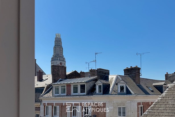 From the windows, the gaze is lost on the rooftops of Amiens, and catches, in the distance, the emblematic silhouette of the Perret Tower, recalling at every moment the exceptional situation of this property.