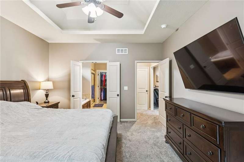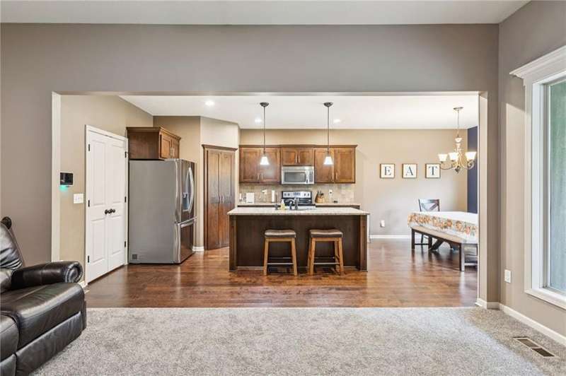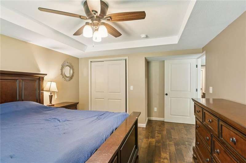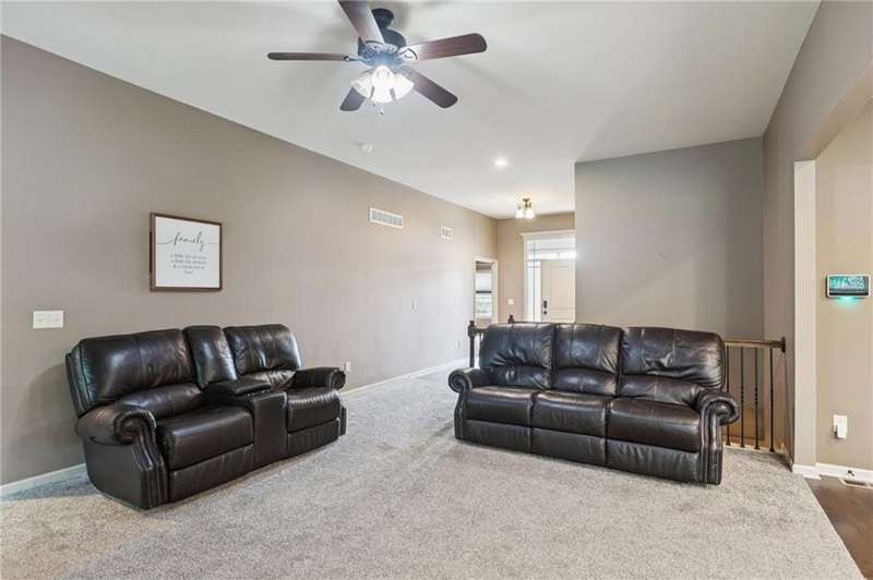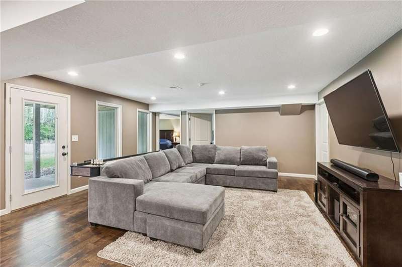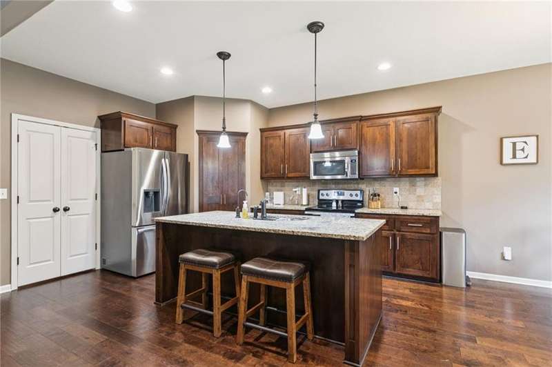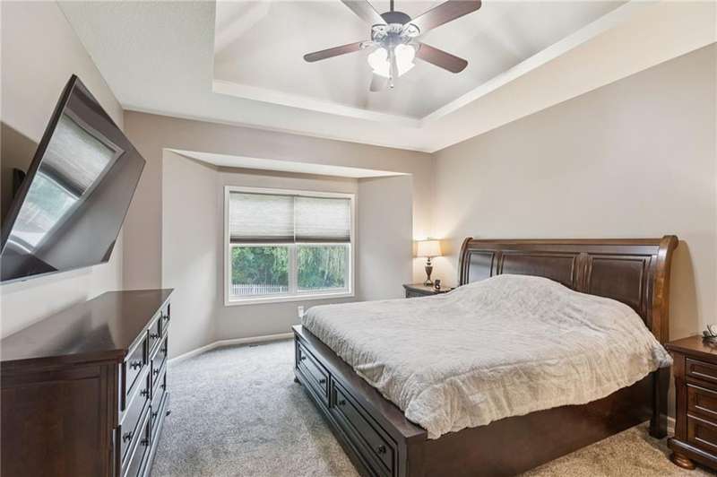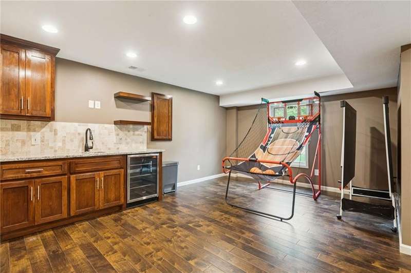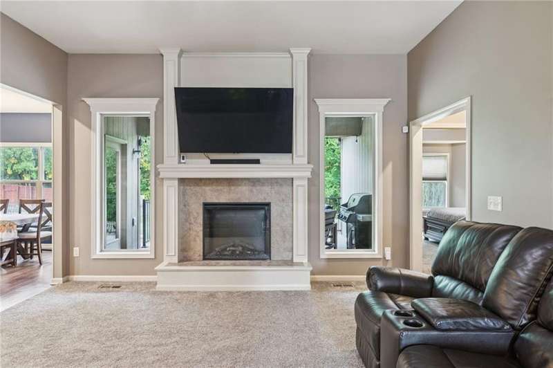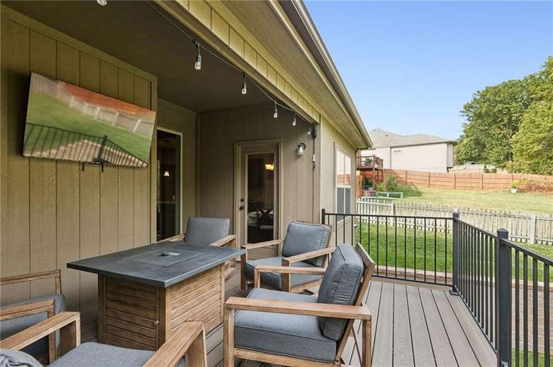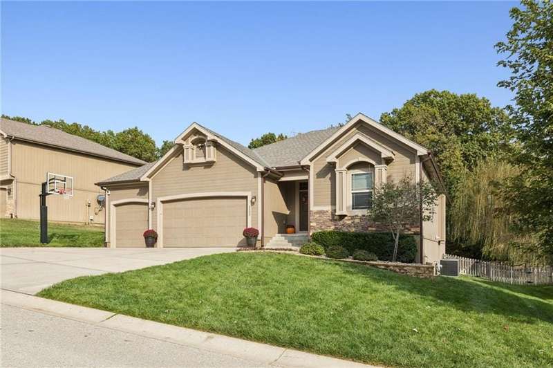 Come enjoy one level living with this ranch/reverse home. This spacious open floor plan makes entertaining easy. A one owner home that has been well maintained with lots of updates including composite deck w/expansion, new HVAC & water heater (2020), new carpet on upper level (2023), some new interior paint (2025), and new impact resistant roof & 5 gutters (2025). Loads of features including an oversized pantry, large kitchen island, warm & friendly fireplace, floor to ceiling windows, sprinkler system, water softener, storm shelter and more. The master bedroom & bath await relaxation with jetted tub, separate tile shower, double vanity and huge walk-in closet. The walk out basement provides a family room area with wet bar, 3rd full bath and 2 additional bedrooms/office, that walk out to a covered patio. The office could be used as a 5th non-conforming bedroom. The partially covered & expanded deck is the perfect place to spend your free time, equipped with a TV to watch all your favorite sports & movies. This home offers peaceful seclusion with a yard that backs up to a heavily wooded area. Subdivision amenities include a new oversized pool, covered pavilion and walking trails. Home sits on a dead-end street with low traffic. Within minutes to Legends/Village West Entertainment District. Close to schools and easy highway access.