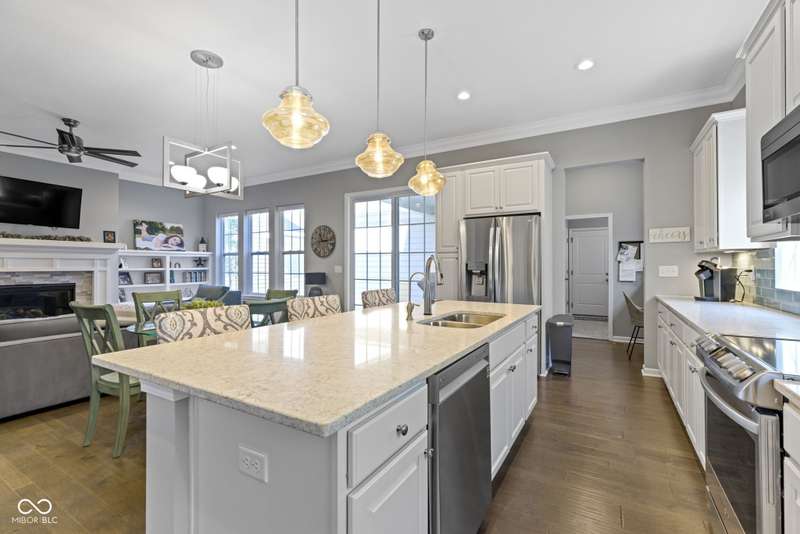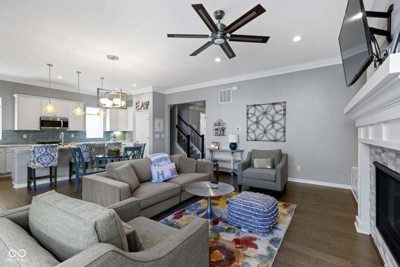 Discover this attractive residence located in the Harmony Community where the amenities are endless and the neighborhood offers a strong sense of community. This single-family residence, built in 2021, presents in great condition and offers a wonderful opportunity to experience modern living with over $130,000 in Builder & Homeowner Upgrade/Updates. The heart of this home is undoubtedly the great room, a space designed for both relaxation & gatherings, showcasing a fireplace that serves as a focal point, complemented by custom built-ins and 10 foot high ceiling. Imagine cozy evenings spent in this inviting atmosphere. The kitchen is a chef's dream, featuring a large kitchen island perfect for meal preparation and entertaining, ample shaker cabinet storage, pantry and stainless appliances. The three upper bedrooms are large and offer a nice oasis for a private getaway. This home has 2 full baths and 2 half baths, a finished basement with endless possibilities, SO MUCH STORAGE, and a 3 CAR LARGE GARAGE. Outside, you'll find a Covered Front Porch, a Covered Side Patio with a second gas fireplace, offering opportunities to enjoy the outdoors, whether it's sipping morning coffee, hosting a barbecue, or simply soaking up the sunshine. Sitting across from common area and extra parking spaces, your guests will have an easy time finding parking when they visit. Embrace the opportunity to make this residential area property your own, where modern design meets comfortable easy living. Harmony Amenities include Clubhouse with 24hr Fitness Center, Yoga room where classes happen, rentable Banquet hall that can hold up to 250 people, Game Room, Meeting Room, and Fully Equipped Kitchen, 3 Pools (Child, Family and Fenced Adult), Tennis/Pickleball/Basketball Courts, Soccer Field, 2 Playgrounds, Walking Trails, Dog Park, Picnic Gazebo, Community Garden, Community Events and many Clubs. Don't miss out!