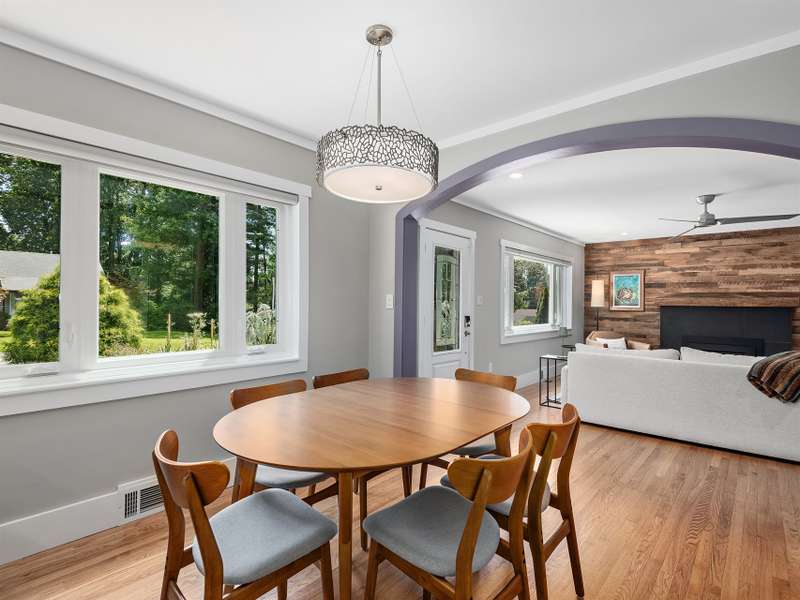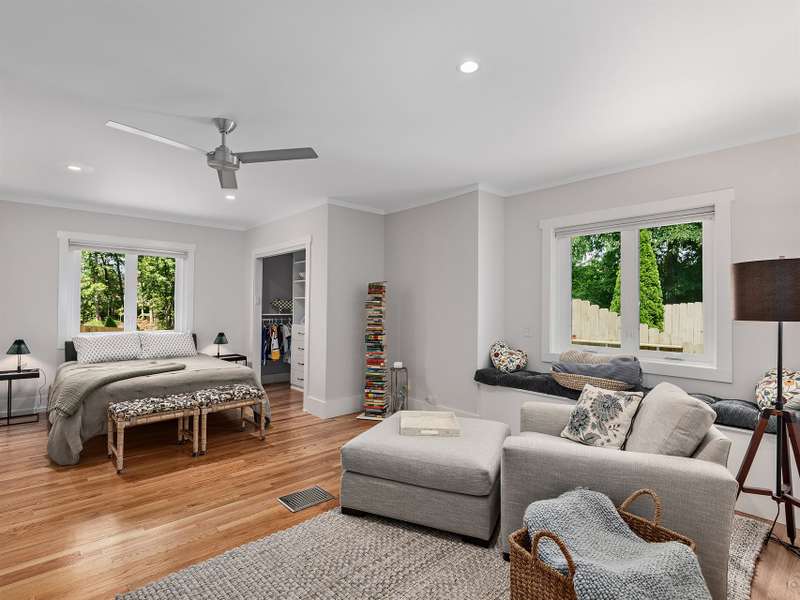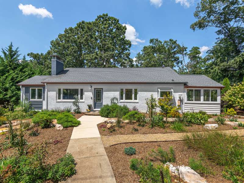 Meticulously renovated mid-century modern in Kenilworth Forest! This gem blends vintage charm with modernupdates ? an open kitchen with gorgeous counters and stainless appliances, freshly refinished hardwoods, andoversized windows that fill the rooms with light. Enjoy huge bedrooms, renovated baths, fresh neutralcolors, and updated fixtures. The gas fireplace set against a striking wood accent wall. Finished basement (not counted in the listed square footage due to ceilings slightly below 7') was previously a permitted STR. It has a full 3rd bath and offers income potential or room to spread out. HVAC new in 2023, upgraded fixtures and window coverings. Fresh paint. Outside, discover a gardener's paradise with pollinator gardens, meandering slate paths, sitting areas, and lush lawn. All just five minutes to downtown Asheville's dining, music, art, and culture, and around the corner from Whole Foods and daily conveniences. A stylish, personality-filled home you won't want to miss!