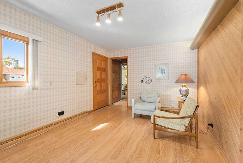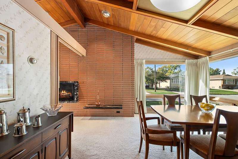 This Incredible, One of a Kind Oak Lawn Home is on the market for the first time in nearly 60 years! Step into Timeless Mid-Century Style in this warm and inviting living and dining area. Rich wood-beamed ceilings, a dramatic floor-to-ceiling brick accent wall with marble fireplace, and expansive picture windows create an open, airy feel while flooding the space with natural light. The thoughtful design blends comfort and sophistication, featuring clean architectural lines and original wood finishes. Perfect for both relaxing and entertaining, this beautifully preserved space showcases the best of mid-century craftsmanship and charm. The main level also includes an updated powder room with marble tile floors and vanity, separate den and home office. Three spacious bedrooms and laundry room are located on the 2nd level. Primary suite has a full bathroom and dual closets. Partial basement is unfinished, awaiting your ideas! Two car attached garage. Many newer mechanicals including ALL Windows (2017), Roof (2019), Water Heater (2019), HVAC (2023). Located within School District 123 boundaries (Sward) and in close proximity to Saint Linus School. This is an Incredible Value and a Once in a Lifetime Opportunity!
