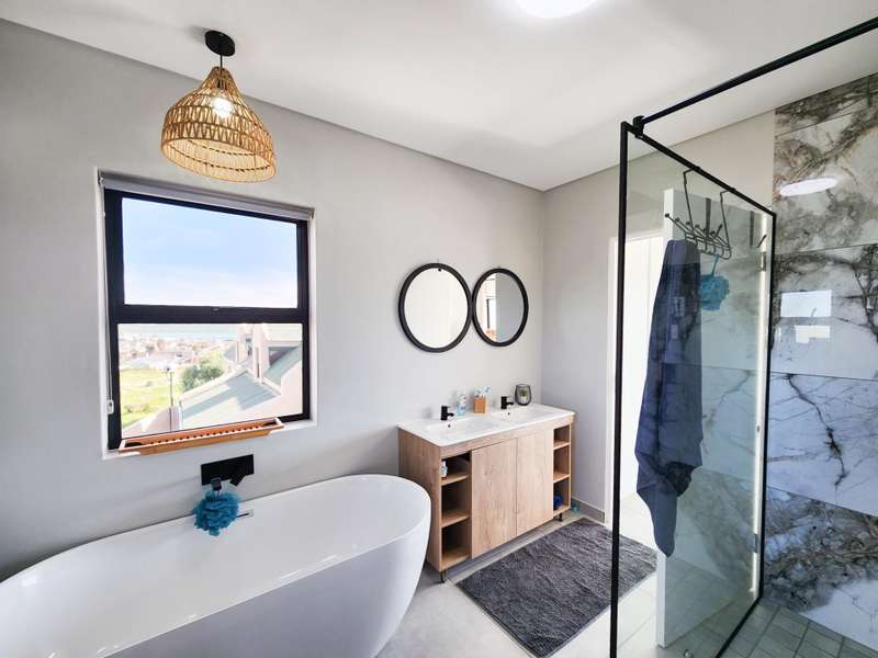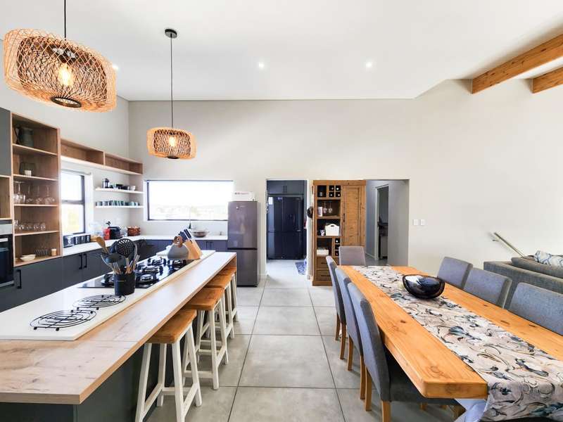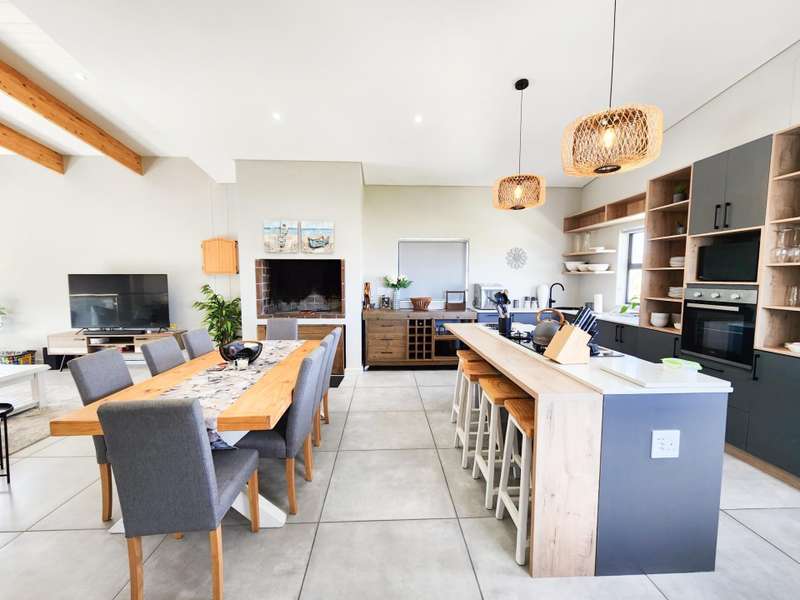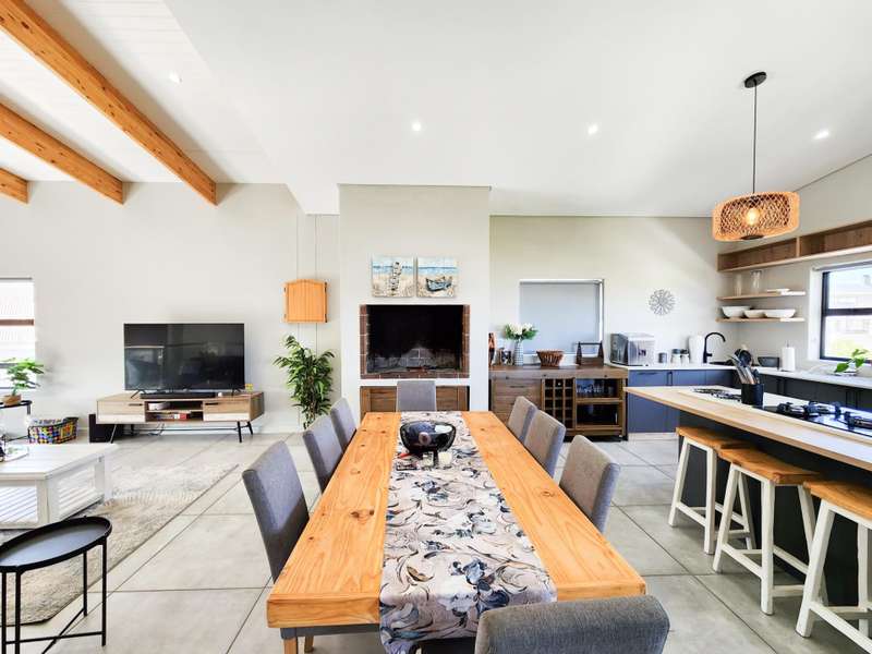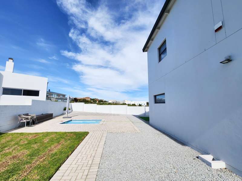 Beautiful and Spacious Double-Storey Home with Lagoon Views in Myburgh Park, Langebaan This beautifully designed double-storey home is perfectly positioned in the sought-after Myburgh Park area of Langebaan, nestled on a quiet panhandle plot alongside a vibrant greenbelt filled with indigenous flowers. Offering stunning views of the Langebaan Lagoon, this property blends tranquility with elegant coastal living. The upper level is dedicated to entertainment, featuring a modern open-plan kitchen with a gas hob, a spacious lounge, and a built-in braai area that flows seamlessly onto a generous balcony overlooking the lagoon. A separate scullery adds convenience and keeps the main living space pristine and functional. The home boasts three well-sized bedrooms, one of which includes its own balcony with breathtaking lagoon views. There are two and a half bathrooms, including a full en-suite bathroom in the main bedroom. The expansive yard is designed for easy living, featuring low-maintenance paving, artificial grass, and a sparkling blue pool ?Çö ideal for entertaining family and friends. Additional features include a double garage, a double carport, an alarm system, and CCTV cameras, ensuring comfort and peace of mind. The furniture and household contents can be included in the sale for an additional amount of R500,000, offering a turnkey opportunity for buyers looking to settle in immediately. Conveniently located, the property is just a short drive from Cape Town and in close proximity to key amenities such as Laguna Mall, Club Mykonos, local schools, and more. This home presents a rare opportunity to enjoy secure, stylish living in one of Langebaan?ÇÖs most desirable locations. Call me for more information or a private viewing!