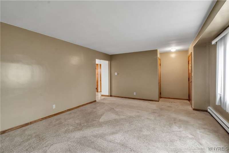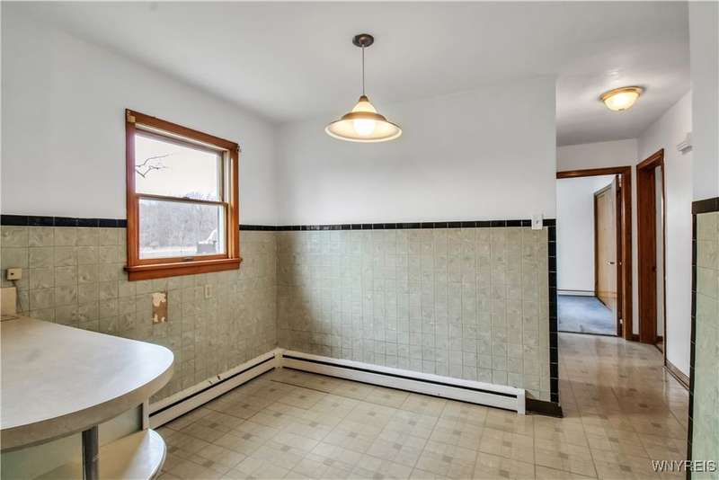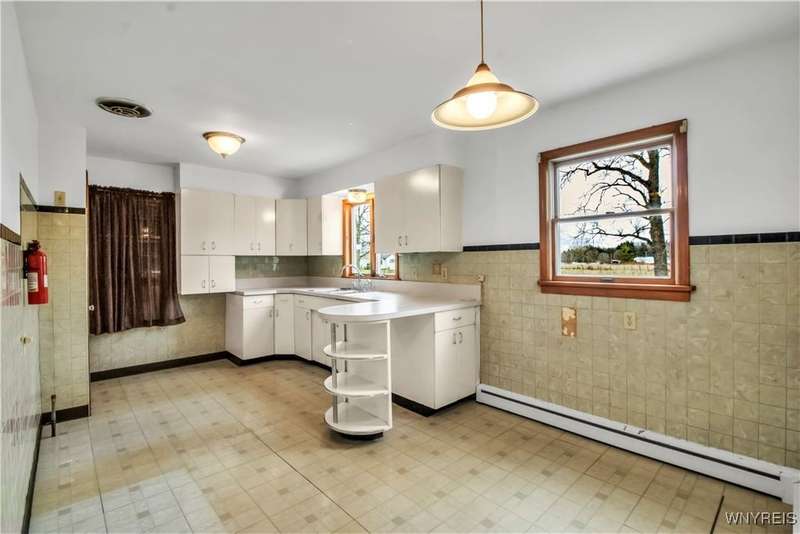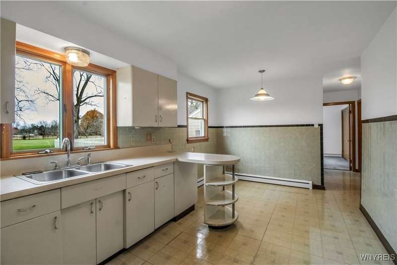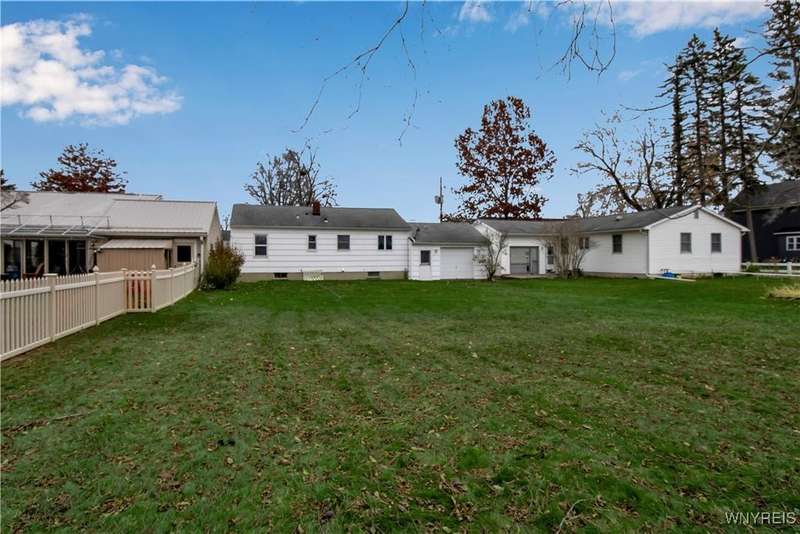 Welcome to this charming ranch in the Village of Akron with endless potential. This delightful 2-bedroom, 1-bath home is brimming with character and ready for its next chapter. Whether you're a first-time buyer, an investor, or someone who loves a good project, this property is the perfect canvas. Step inside to find an inviting eat-in kitchen, a cozy layout and large living room with hardwood floors waiting to shine just beneath the carpet. Both bedrooms have generous closet space, and you'll love the convenience of an additional hall linen closet. The full basement offers the flexibility for storage, hobbies, or future finishing. Enjoy peace of mind with updated vinyl windows and updated electrical already in place. Outside, the extra-large yard provides plenty of room to garden, gather, play, or even expand. The garage features a full rear door to the backyard, creating easy access for outdoor projects. Being sold as-is, this home is ready for someone with vision to bring it back to life with its village location and charm.