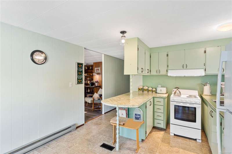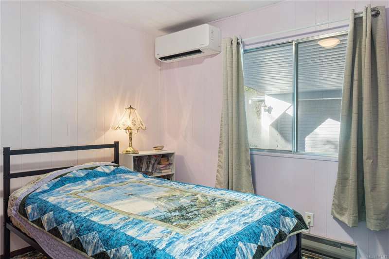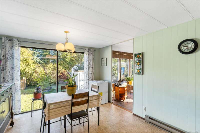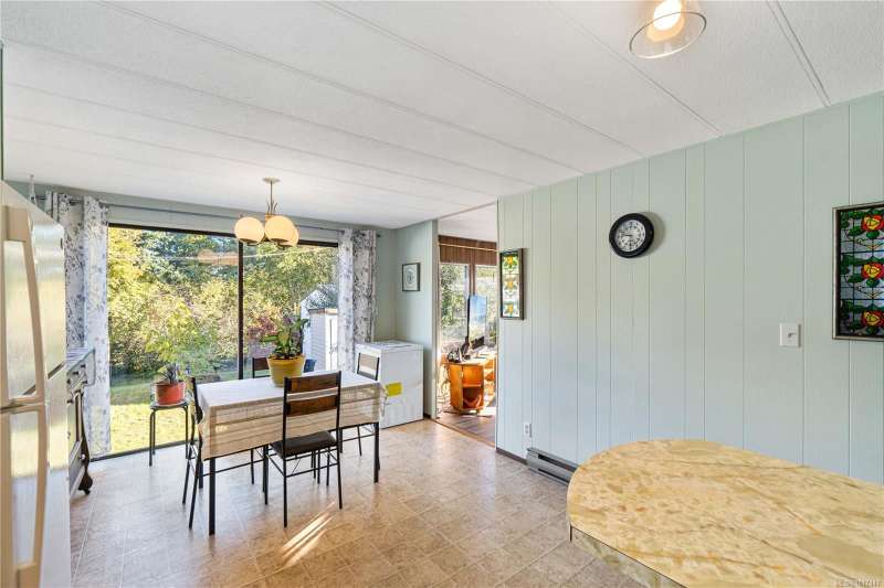 Welcome to Sunnyslope 55+ Manufactured Home Park! Discover comfort and convenience in this beautifully updated 3-bedroom, 2-bathroom double-wide home, perfectly situated within walking distance to Southgate Mall, Chase River amenities, and public transit. Step inside to find nearly 1200 sqft of bright, open living space, freshly enhanced with new flooring, paint, and a modern kitchen refresh. Large windows fill the home with natural light, creating an inviting atmosphere throughout the spacious living and dining areas. Recent upgrades include a new roof and heat pump in 2023 and numerous thoughtful improvements that make this home move-in ready. Outside, enjoy a low-maintenance yard with newly graveled beds and clean edging, ideal for those who love to garden. A wired workshop off the carport provides the perfect space for a handyman or extra storage. With its prime location, updated features, and welcoming community setting, this home truly has it all, comfort, style, and convenience.