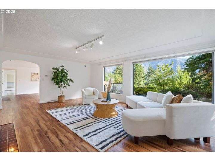 Welcome to your Pacific Northwest retreat! Set on over 6 acres in the heart of Skamania, this beautifully updated 1950s rambler offers timeless character with modern updates—and unbeatable views of the Oregon Cascade Mountain Range. Step into a light-filled formal living room with picture windows that frame both the mountain range and the tranquil koi pond in the backyard. Enjoy cozy evenings by the wood-burning fireplace taking in the vibrant alpenglow and listening to the tranquil pond waterfall. Imagine cooking in the classic 50's era kitchen with some new appliances and fixtures or entertaining in the large formal dining room that opens to a spacious back deck, where you can relax or entertain while taking in stunning views. The main level includes three spacious bedrooms—each with charming built-ins typical of the era. The primary suite features a private bath with a jetted tub and walk-in shower, and all bedrooms and bathrooms feature brand-new flooring. Downstairs, a fully finished basement with its own entrance offers a large family room with a second fireplace, a bathroom, and a non-conforming bedroom—plus the perfect opportunity to add a kitchenette for multigenerational living. Outside, enjoy the seclusion of wooded acreage, beautiful flowers in the spring, a seasonal creek, gated entry, and space to roam. Car enthusiasts, outdoor adventurists and hobbyists will love the attached 3-car garage, plus a detached 2-bay shop with lean-to for extra storage or workspace. This private property offers the best of country living, Near the Skamania School, about 30 minutes to the Portland Airport and just a short drive or bike ride to the Columbia River and all the adventures Skamania County has to offer. Don't miss this rare blend of privacy, charm, and mountain-view living! Schedule your tour today!