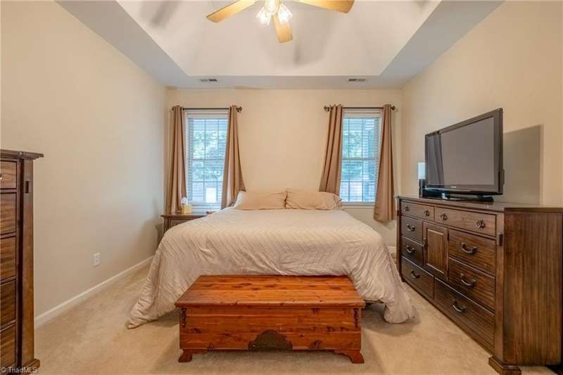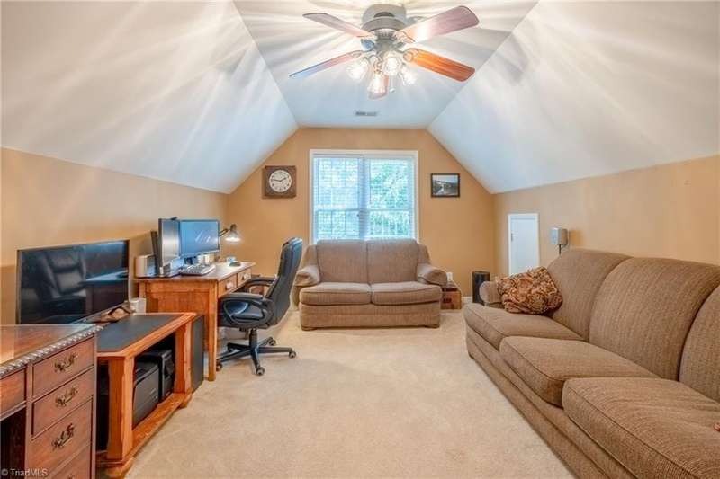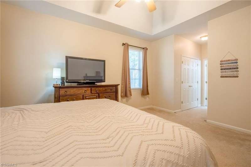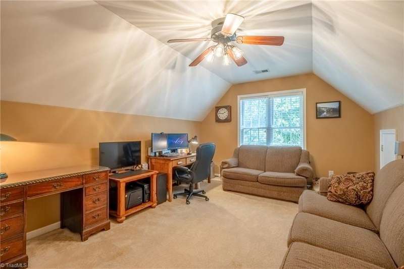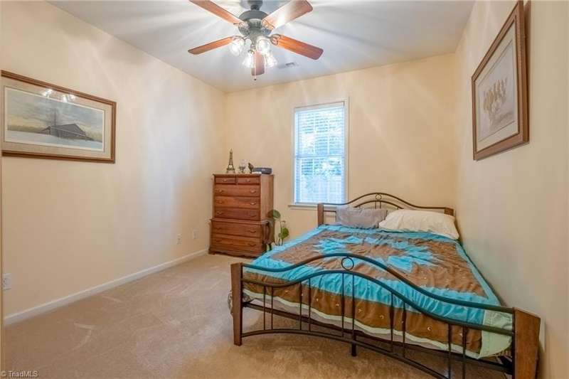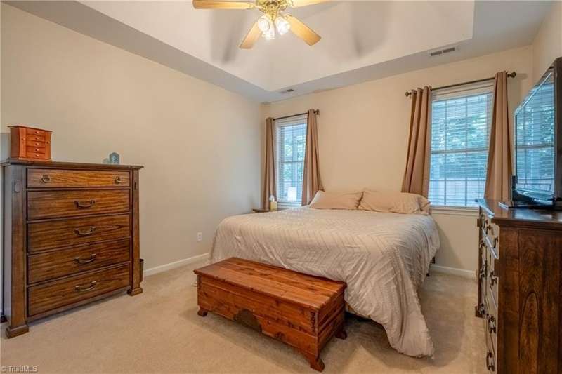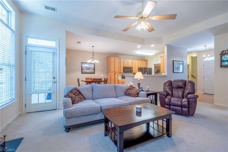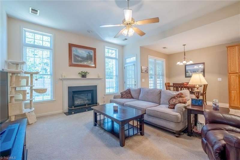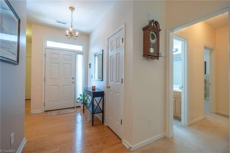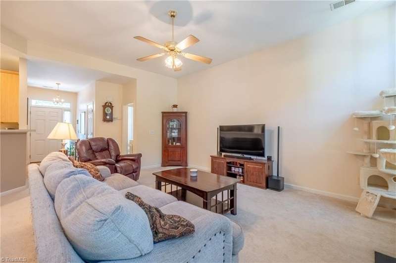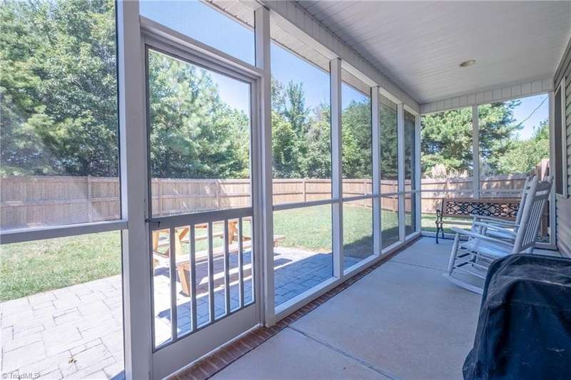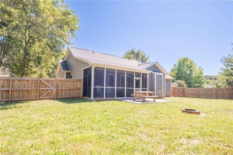 Well-maintained home on a quiet cul-de-sac, offering desirable one-level living and featuring a large upstairs bonus room. The open, split-bedroom floor plan includes 9-foot ceilings, creating an airy and inviting feel throughout. Enjoy outdoor living on the screened porch overlooking a large, private, fenced backyardperfect for relaxing or entertaining. A spacious 2-car garage provides excellent storage and convenience. Recent updates include HVAC (2021), privacy fence (2023), and a new roof and vinyl siding (Aug. 2025). Residents of Reedy Fork enjoy fantastic amenities including pool, tennis, clubhouse, and scenic trails. Move-in ready and waiting for you!