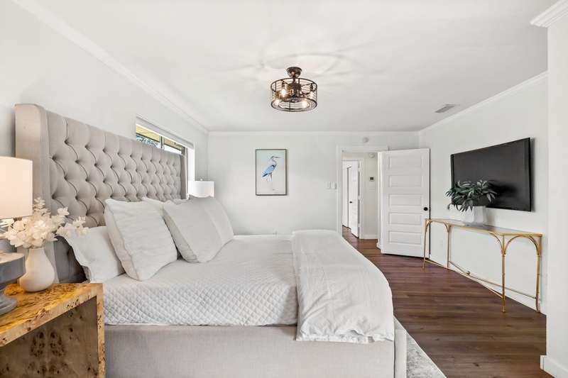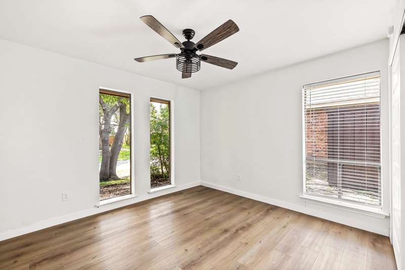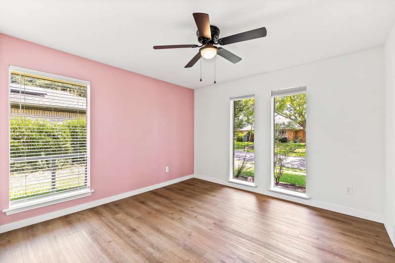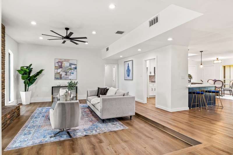 Nestled on a quiet street in the established Woodcreek neighborhood, this beautifully updated 4-bedroom, 3-bathroom home offers abundant natural light and an open-concept design. Bright interiors feature soaring ceilings, expansive windows and luxury vinyl plank flooring throughout. The inviting living room with a cozy fireplace flows seamlessly into the dining area, while the renovated eat-in kitchen boasts ample storage, modern cabinetry, updated appliances, and a charming breakfast nook. The oversized primary suite includes private patio access and a newly refreshed bath with a walk-in shower, dual vanities, and generous closet space. Three additional bedrooms and two full baths provide plenty of room for family or guests. Enjoy the elegant covered patioperfect for outdoor dining and entertainingsurrounded by mature trees. Ideally located just minutes from shopping, dining, entertainment, and major highways, this home combines comfort, style, and convenience.