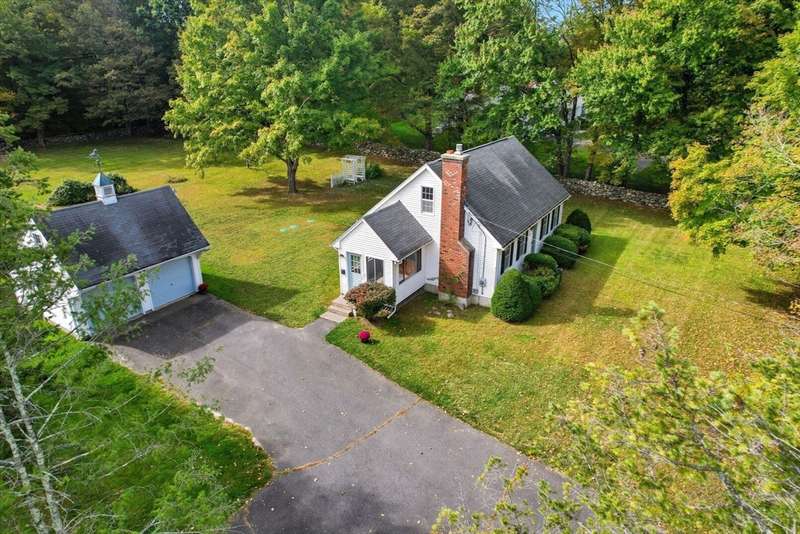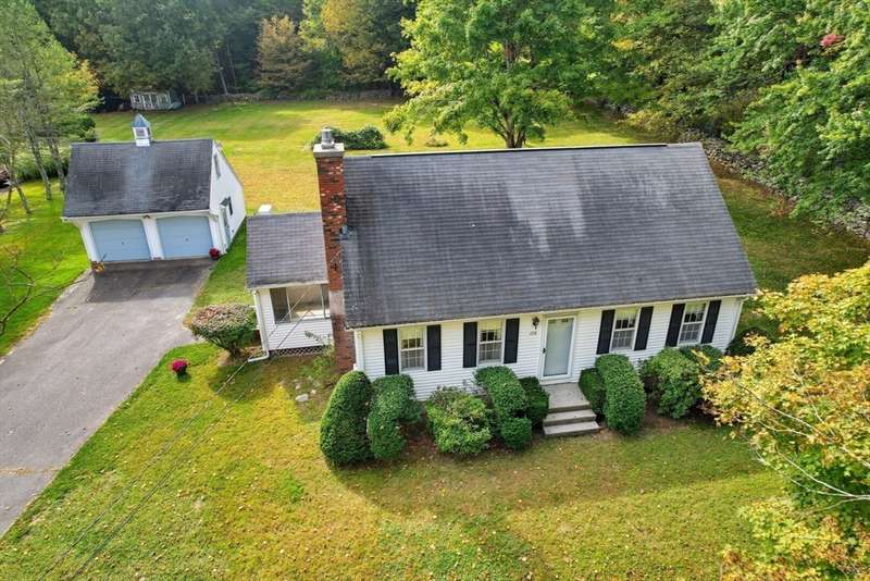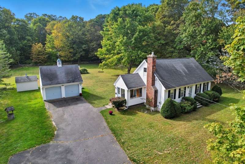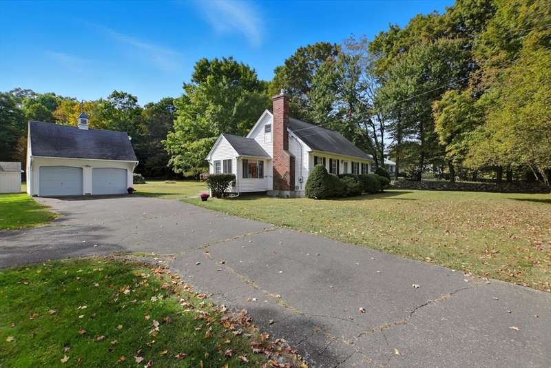 OFFER DEADLINE WEDNESDAY OCTOBER 1 BY 5 PM. Custom built Expandable Cape will win your heart! Feel the charm of the traditional Cape home and 2 car garage that repeats the Cape look, set behind restored New England stone walls on a spectacular .95 acre lot. Enclosed porch/Mud Room entrance leads to the sunny kitchen with eating area. Formal entrance opens to Living room, hall and 2 bedrooms all with wonderful Red Oak hardwood floors and solid raised panel doors which give evidence of the quality workmanship of the original builder owner. Decorative Jotul propane stove is a focal point of the living room that adds to the warm ambience and also provides an additional heat source, while the automatic Generac generator, pellet stove, and new 4 bedroom septic system speak to the continued care and planning that give this home its special value. The quiet village setting is commuter friendly to area colleges and universities, with easy access to the MassPike and other major highways.