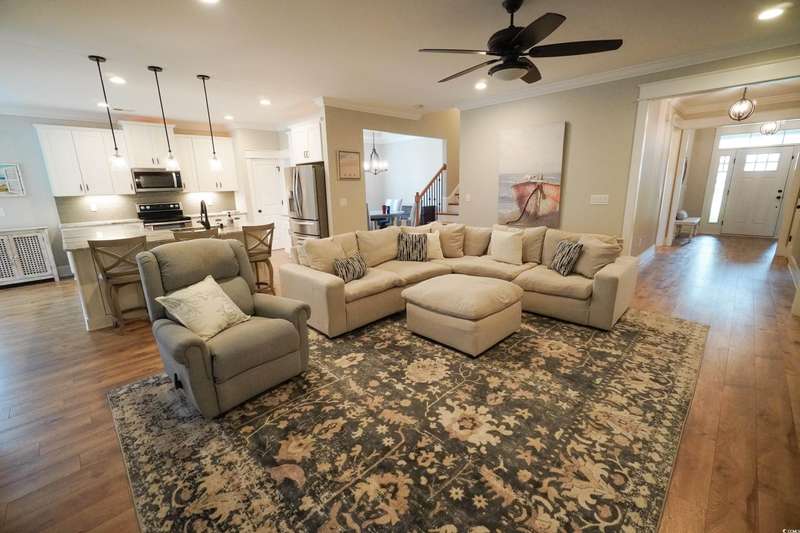 Don’t miss the opportunity to own this stunning 4-bedroom, 3-bath home with a versatile bonus room—perfect for a 5th bedroom—located in the highly sought-after gated community of Cypress River Plantation. From the moment you step inside, you’ll appreciate the thoughtful details and upgrades throughout. The spacious, modern kitchen, featuring granite countertops, stainless steel appliances, soft-close cabinets and drawers, and plantation shutters for a timeless touch. Luxury vinyl plank flooring flows throughout the home, complemented by crown molding in the main living areas and owner’s suite. The living room is warm and inviting with a gas fireplace and custom built-ins. Upstairs, you’ll find a private bedroom/office and a bonus room with a large closet and additional storage room, along with access to ample attic storage. The expanded two-car garage also provides extra space for storage or hobbies. Step outside into your own backyard oasis—complete with a heated and cooled saltwater pool, lush landscaping, and an extended rear yard featuring a fire pit and open space perfect for entertaining, games, or relaxing in total privacy. Additional highlights include a whole-house water filtration system, generator hookup, and plenty of storage throughout. Cypress River Plantation offers resort-style amenities on the Intracoastal Waterway, including an owner’s clubhouse, fitness center, basketball and tennis courts, sidewalks, a large community pool, kiddie pool, boat launch, day docks, and storage for boats and RVs. With an active and welcoming community, there’s always something to do.