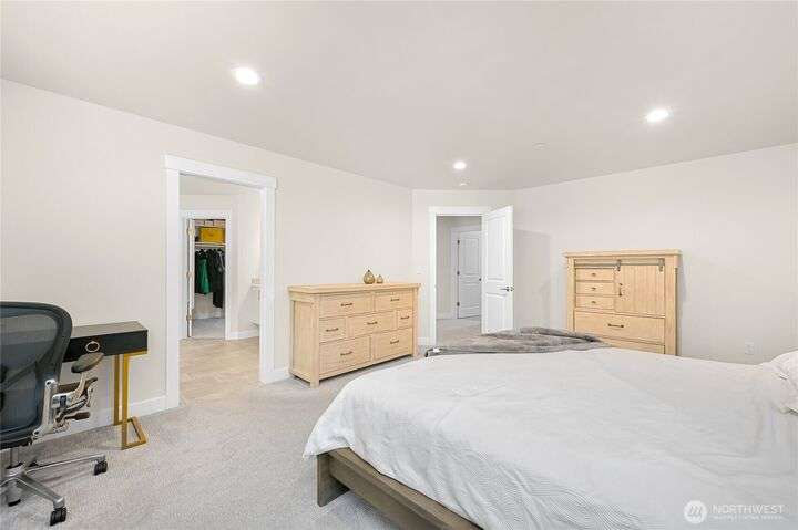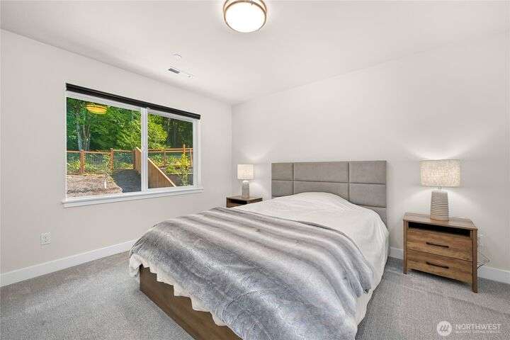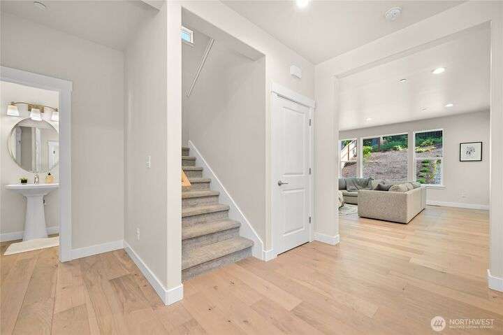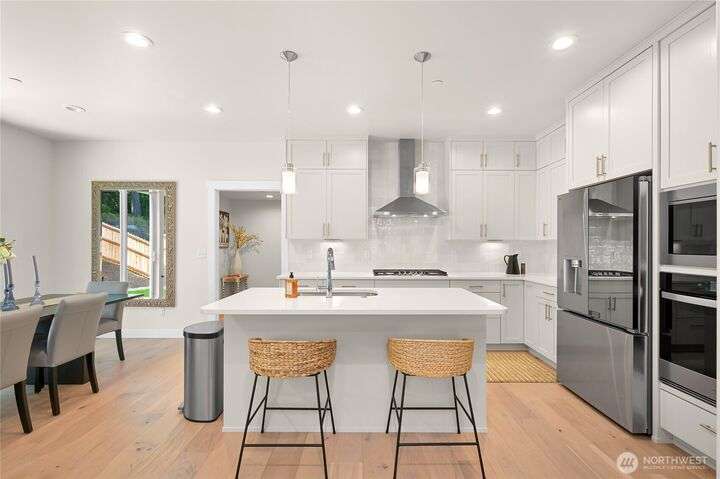 Desirable Skeers built 2,633 square foot home in Hannah Creek with a fenced back yard that backs up to a beautiful treed and protected acreage that is owned by the city. Only a short walk to picturesque Whatcom Falls Park, Lake Whatcom's Bloedel Donovan Park, and literally steps to famous Galbraith Mountain offering miles of biking and hiking trails. Features include 4 bedrooms, office, 3 baths, great room design that opens to the kitchen, mud room with adjacent walk-in pantry, large primary bedroom, covered front porch, and an area bay in the garage for all your toys! This home is absolutely immaculate and both inside and out!!