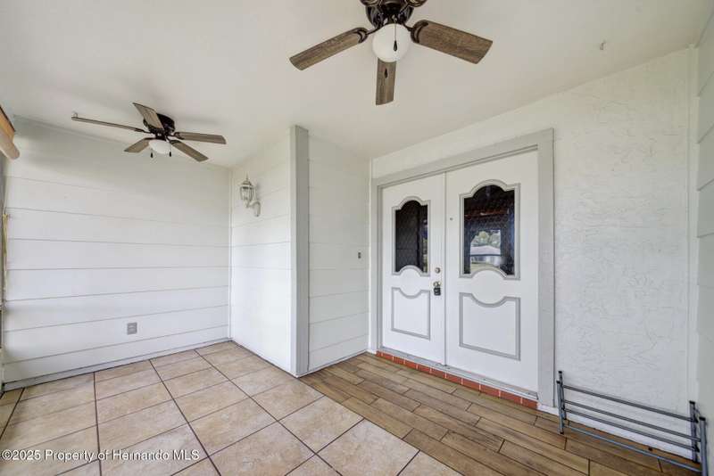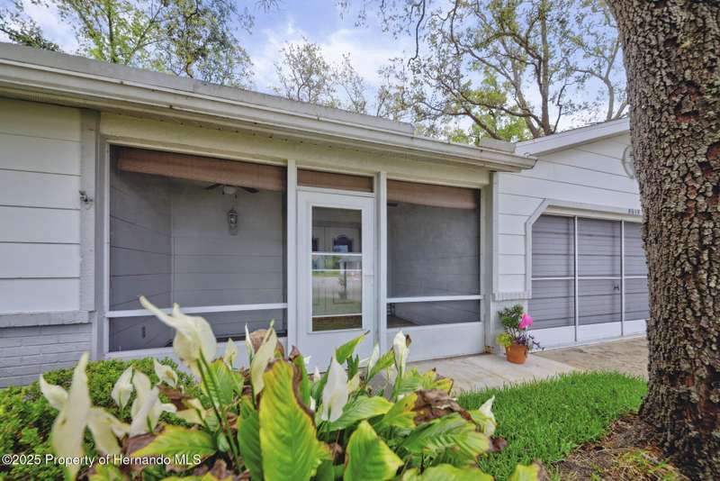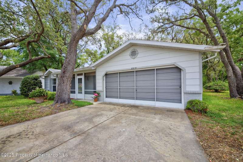 LOWERED THE PRICE FOR LABOR DAY WEEKEND VIEWING! Come see this darling, well-maintained home in Timber Oaks, a tranquil 55+ community. Its located in a cul de sac, sits on a unique lot with magnificent trees, and a large back patio. This Block, 2 bedroom, 2 bath home is true Open Concept, with exceptional living space and a beautiful view to the shaded back yard. The eat-in kitchen AND back bedrooms can be closed off by glass French doors, which are a featured touch. The kitchen features newer LG appliances, a large pantry, and plenty of counter seating. The front entry has an enclosed tile porch with ceiling fans- another perfect spot to enjoy the outdoors! The 2 car garage is screened for ventilation, and has washer/dryer hook-ups. Hurricane measured plywood and non-invasive hooks are labeled for windows - and in the garage. The HVAC was totally reworked 6/25- unit is 2013. HOA is only 55 dollars month! Enjoy the pool, clubhouse, shuffleboard and ''sociability!'' This is a true value today!