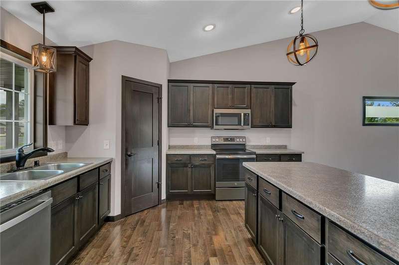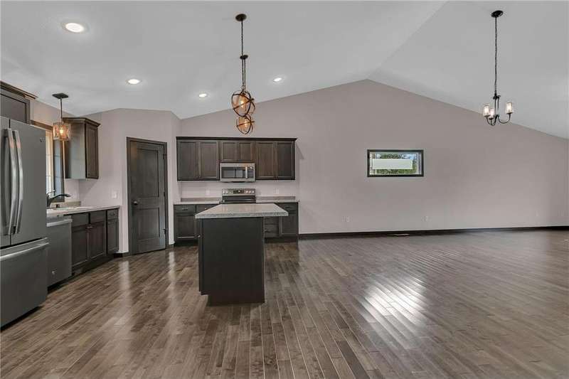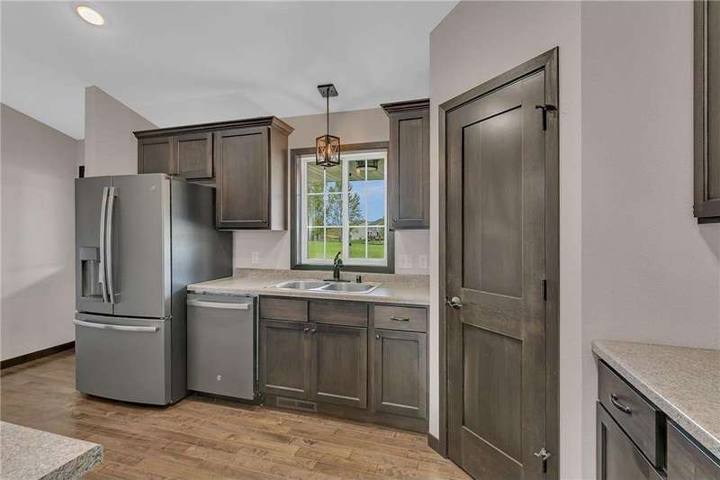Stunning newer Tri-level walkout home offering 4 bedrooms and 3 bathrooms with beautiful hardwood floors throughout the main floor. The open concept design features vaulted ceilings, a modern kitchen with stainless steel appliances, large center island, and walk-in pantry. Enjoy seamless indoor/outdoor living with a spacious living area that walks out to a large deck with pergola overlooking the pond. The lower level walkout includes a bright family room, additional bedroom, full bath, and access to a concrete patio, perfect for entertaining or relaxing. The private owner's suite boasts a spa-like bath with walk-in shower and generous walk-in closet. Additional highlights include an irrigation system, stylish finishes, 3 car garage and ample storage. Nestled on a beautiful lot with serene pond views, this home combines modern comfort with an unbeatable setting.