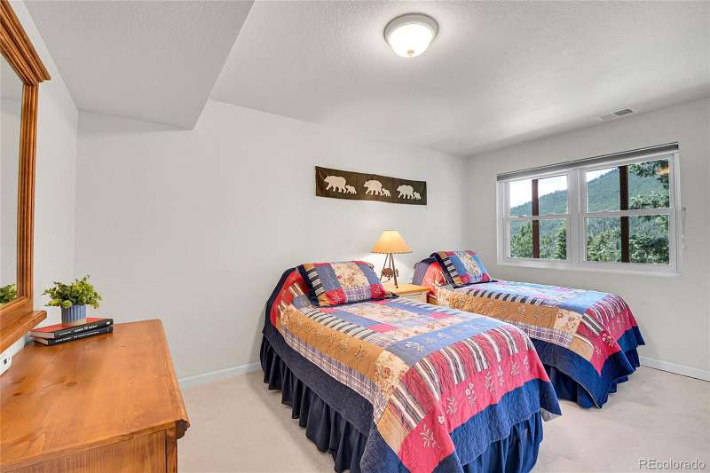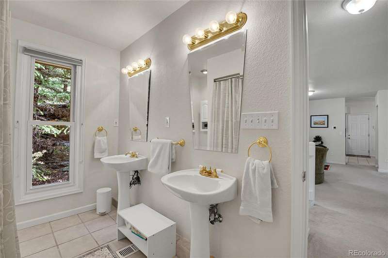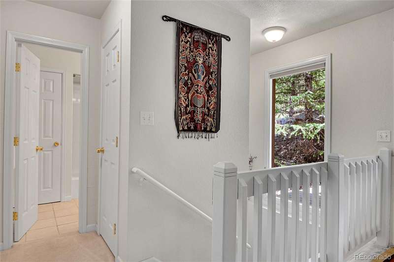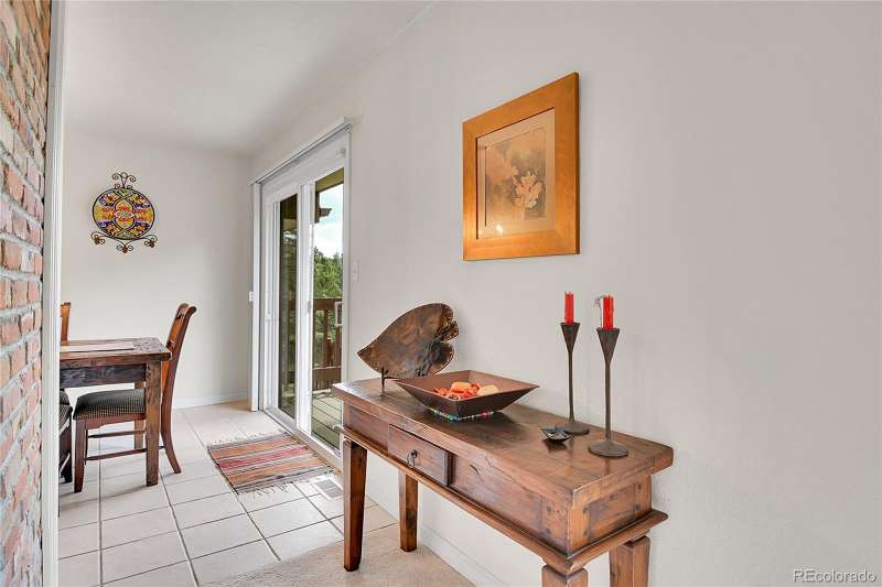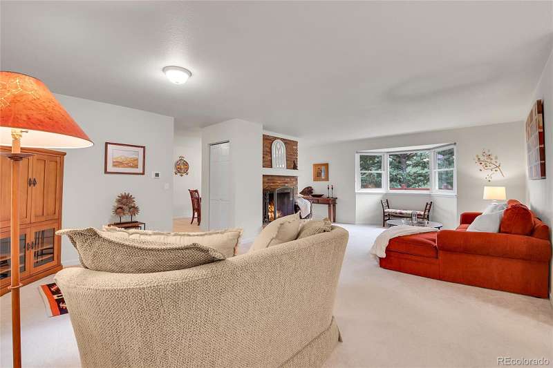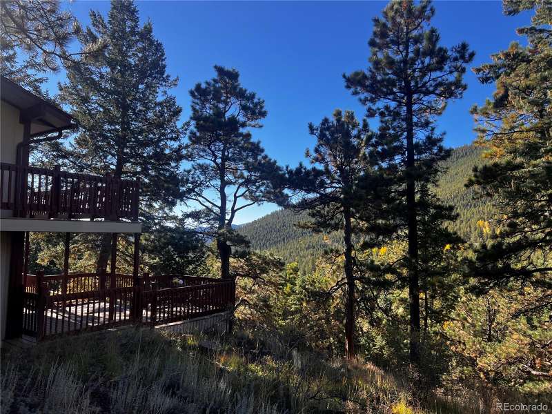 This delightful home offers incredible views and a lovely private setting. Perfectly perched to take in the vistas from the two decks and through multiple windows, you feel as if you are living in a treehouse. Yet it's only one step up from the 2-car garage into the kitchen and living areas! Head inside to an immaculate home ready to move into. In 2003, the home underwent a comprehensive renovation, where it was taken down to the studs and rebuilt. This extensive remodel included updates to the windows, siding, roof, insulation, flooring, kitchen, and bathrooms, among other improvements. The home has been lightly used as a part time home since then, and perfectly maintained all the while. The kitchen has granite counters and maple cabinets including a pantry cabinet, and opens to a dining area with views and access to the deck. The spacious living room offers a wood burning fireplace and lovely view windows. The primary bedroom is large with double closets, and has access to the 2nd composite deck and beautiful bathroom. The charming lower level den with fireplace offers a cozy retreat or makes a great office. Outside the decks and front porch offer so many options for outdoor living with great views- and all very private! The 1+ acre lot gets abundant sunshine and frequent visits from deer and elk. The oversized garage includes windows, a workbench, and a sink. In addition, you will find a great shed offering more storage for those mountain toys. And don't sweat the details…brand new septic installed, and a new furnace and new hot water heater in 2023 ensure this home is worry free and ready to be your next idyllic mountain home. All this with open space hiking trails close by and within minutes to Evergreen shopping and amenities.