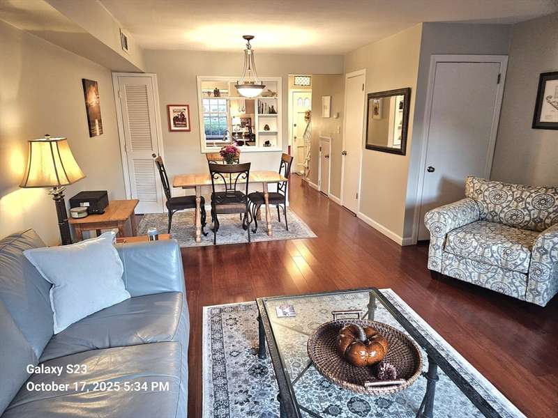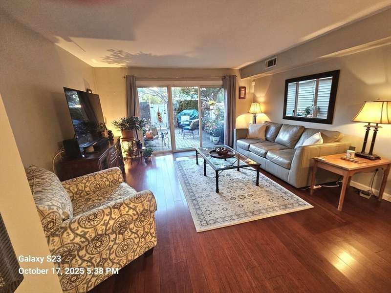 Open Houses Saturday, October 18th and Sunday, October 19th from 12:00-2:00! Lovely "deluxe" 2 bedroom unit at Windsor Green offering 981 square feet of living space! You'll find wood laminate flooring throughout the 1st floor where the kitchen offers granite counters and SS appliances. There is a 1/2 bath off of the living room/dining room area. Sliders from the living room take you to your own private patio perfect for your garden and summer evening dinners. There is also a newer shed for extra storage needs. Walk up the stairway with brand new carpeting to the sun-kissed primary bedroom where you have plenty of space and beautiful sunsets! This floor also offers a guest bedroom with a generous closet, a full bath and a washer and dryer. Don't miss this opportunity to move into this delightful community with beautiful plantings, swimming pool, basketball court and a small playground for children.