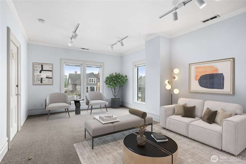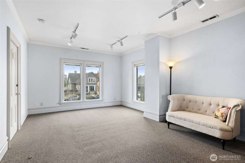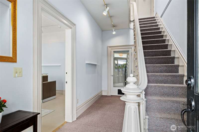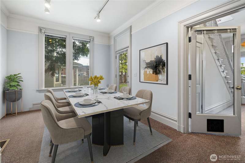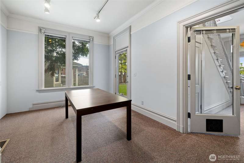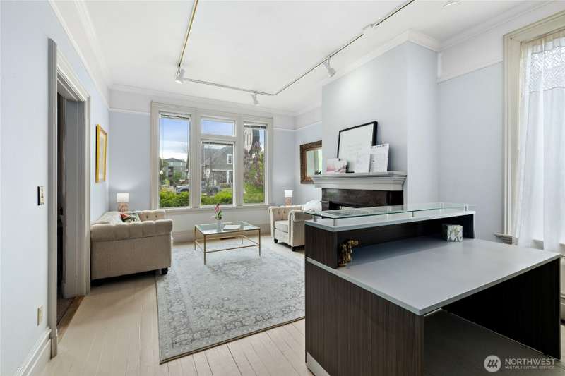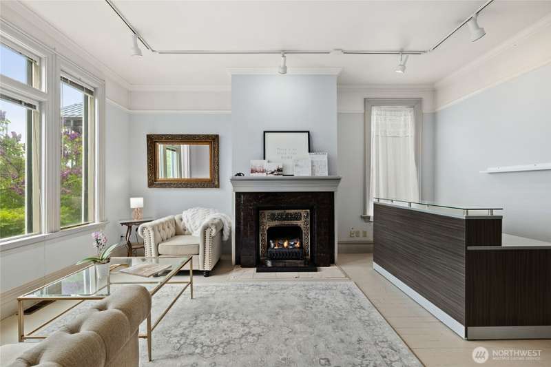 This breathtaking historic gem offers timeless elegance with modern updates. Featuring a spacious main floor bedroom and half bath, a grand living room with a cozy fireplace, a formal dining room and a thoughtfully remodeled kitchen, this home exudes charm at every turn. Upstairs, two sun filled suites and two additional bathrooms provide ample space and comfort. The second floor layout perfectly balances historic character with modern functionality, making every day living feel like a retreat! Enjoy outdoor living at its finest on the walk-out porch, an ideal spot for morning coffee or evening relaxation. Nestled on a property with four uncovered parking spaces off the alley, this home offers versatile CC zoning.