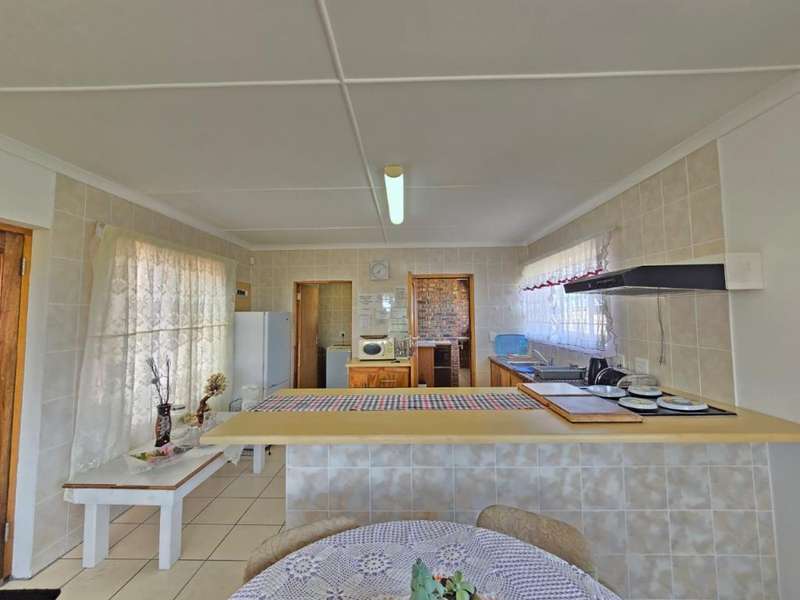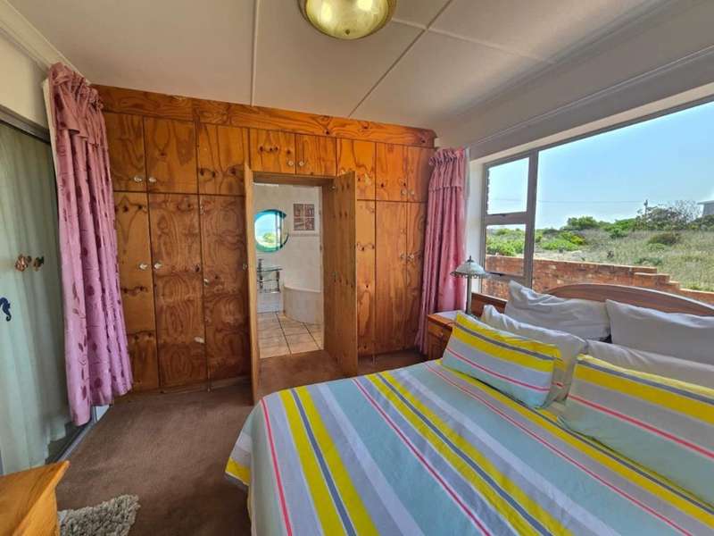 The two separate versatile living spaces provide flexibility for various lifestyles, whether it's accommodating extended family or generating rental income. The spacious open-plan dining and living room are an inviting area for entertaining guests and enjoying family time. A well-appointed wooden kitchen with ample storage and counter space and a laundry, make everyday living a breeze. The indoor braai area is convenient for living and hosting gatherings. The sunroom with lots of natural sunlight is a lovely space with beautiful views. With its cornered window, this space is perfect for relaxation and soaking in the scenery. There are two comfortable front bedrooms with en-suite bathrooms. The other two bedrooms are versatile spaces that can be used as guest rooms, home offices, or converted into additional bedrooms. The well-equipped full bathroom will be shared by the additional bedrooms. The courtyard offers privacy and independence for the second living space. This home has lots of potential for conversion and is easily adaptable to a four-bedroom home, making it suitable for various family arrangements. It has convenient road access and proximity to the ocean and the hub of Struisbaai. Overall, this house offers a unique blend of space, comfort, and versatility. It's the perfect place to create lasting memories and enjoy the beauty of the ocean.