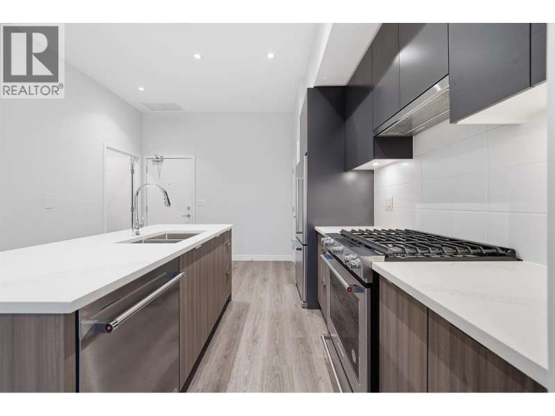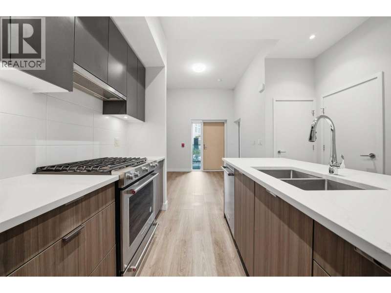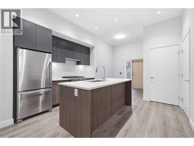 Discover this inviting 1 bed+den home in the heart of the River District, offering rare ground-floor living with private walk-up entrance & patio, perfect for pet owners, cyclists, those who love convenience or evening scenic riverfront walks. Thoughtfully designed with open layout, high ceilings & premium finishes throughout including KitchenAid stainless steel appliances, gas range and quartz countertops. Enjoy year-round comfort with efficient heat pump providing both heating & cooling. With 1 parking stall & 1 oversized storage locker, you have plenty of space in & outside of your unit. Top-notch building amenities including concierge, fitness centra, yoga/TRX studio, rooftop terrace with BBQ & lush courtyard. This home checks every box. OPEN HOUSE SAT/SUN NOV 8&9 2-4PM. (id:58403)