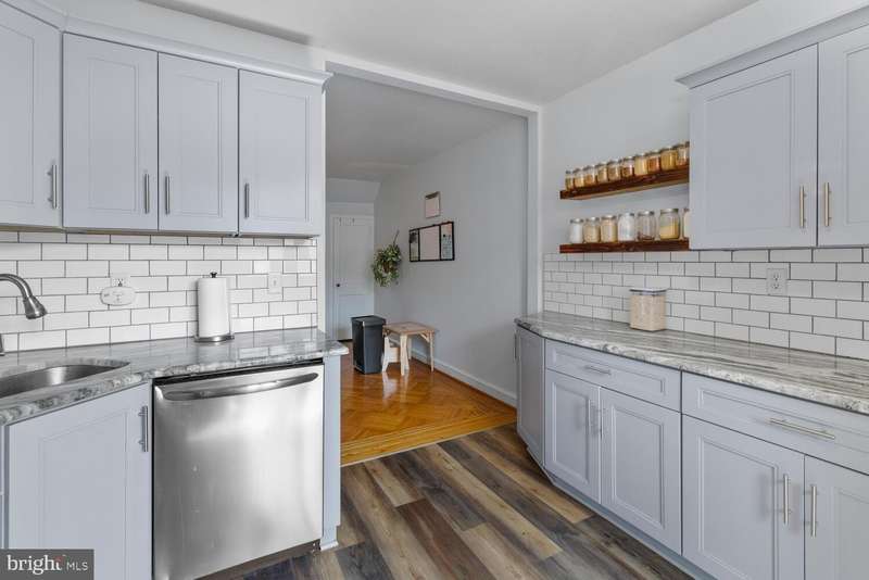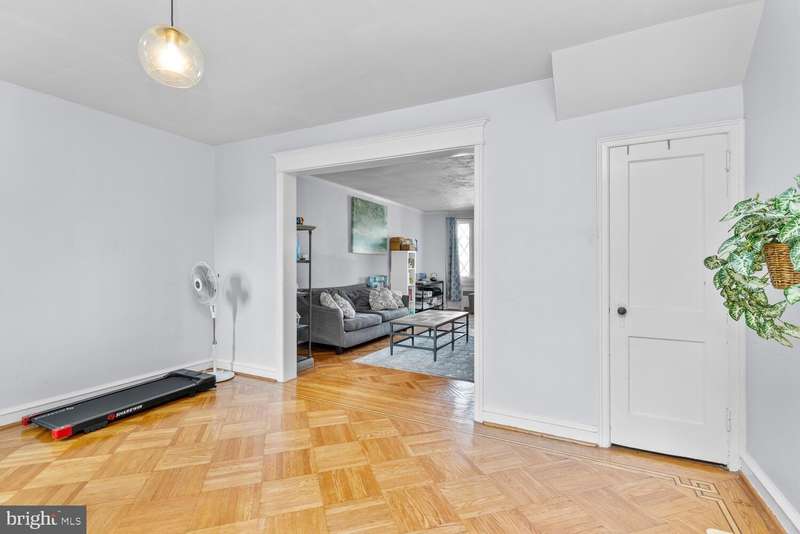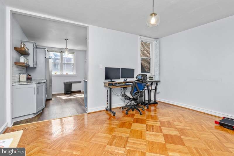 Welcome to this bright and spacious 3-bedroom, 2-bathroom home with a beautiful stone exterior, nestled on a quiet street in East Mount Airy. Spanning 1466 square feet, this property offers an open feel and airy rooms, with well preserved wood floors throughout. The kitchen flows easily to the large dining room, which is in turn open to the broad living room. The kitchen has granite countertops, plenty of storage, and stainless steel appliances. The second floor boasts large bedrooms with good light and excellent closet space. The upstairs bathroom conveniently has a separate bathtub and tiled standup shower, plus a . The finished basement, complete with a full bath, provides versatile space that can be transformed into a workout area, media room, second living room, or home office. Outside, you'll find convenient off street parking in front of or inside of a 1-car garage (currently used as the gym). This move-in ready home combines charm with modern living in the Northwest, one of Philly's most desirable areas with easy access to parks, cafes, shops, and public transit.