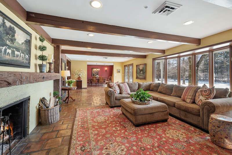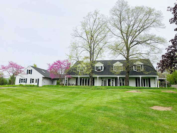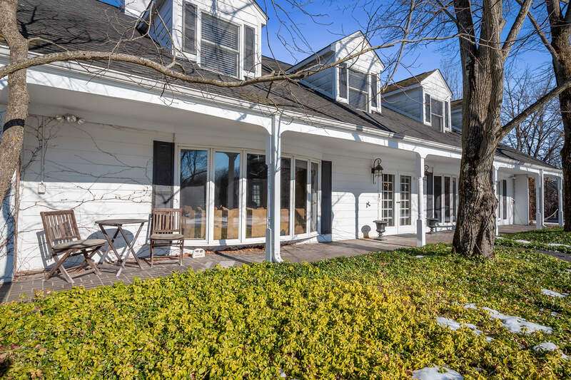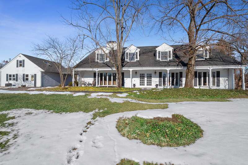Located in a tucked away Barrington Hills neighborhood, at the end of a winding cul de sac, this quintessential Cape Cod residence offers the perfect blend of timeless, classic charm and modern potential. Set on a breathtaking 5 acres lot, this home is a true sanctuary. With options for either a main level or 2nd level primary suite you will find spacious bedrooms and 4.1 bathrooms in the main home. This well-designed house boasts generous living spaces throughout, including large eat in kitchen, open living room with beamed ceilings and large wood burning fireplace, cozy family room. The en-suite on the main level can easily serve as a home office option, great for guests or for multi-generational living. The welcoming covered front porch adds to the home's curb appeal, setting the stage for relaxed country living. The coach house apartment with a kitchenette is perfect for in-laws, or home office, e-learning space, or guest accommodations above the 2 car detached garage. Equestrian enthusiasts will appreciate the barn (currently being used as the 2nd garage space), could easily be converted back, plenty of room for your chickens, goats, and vegetable or flower gardens. For those who love outdoor recreation, the expansive property offers ample space for a future in-ground pool, or future tennis or sport court. Situated in a convenient location, this home provides easy access to I-90, downtown Barrington, the Metra train station, local shopping, hip coffee shops & dining, and award-winning Barrington schools. Don't miss this rare opportunity to own a premier Barrington Hills estate with endless possibilities!