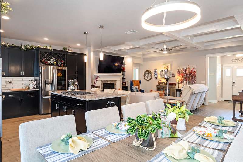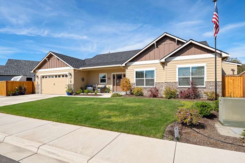 Discover this beautifully crafted 4-bedroom, 2-bath Horton Home located in Central Point. The open floor plan is highlighted by coffered ceilings, gas fireplace and engineered hardwood floors creating an inviting atmosphere. High end appliances, granite countertops, oversize island that invites the living room into the kitchen for entertaining. The primary suite is a true retreat, boasting luxurious tile, glass shower and walk in closet. The backyard features a covered back porch, built in wood burning fire pit, swim spa and gazebo. Ample RV parking and 50 Year architectural roof. Schedule your showing today!