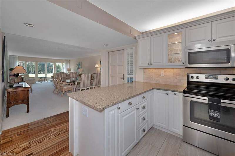 Motivated Seller, Bring Offers! Welcome to Wilderness Country Club, your paradise in the heart of Naples. Overlooking the picturesque 18th fairway, this 2-bedroom/2-bathroom unit is perfect for those seeking convenience and proximity to Wilderness' ultimate amenities. Experience the luxury of Wilderness Country Club, a sanctuary of elegance and exclusivity. Gain immediate golf membership with no waiting list and have access to unlimited golf on an 18-hole Arthur Hills course. This unique and spacious, over 1900 sf, open plan second-floor condominium is located in close proximity to the clubhouse, 1st tee, and saltwater pool. It features expansive front-to-back views, giving the unit beautiful natural light throughout the day. The updated kitchen is outfitted with custom white raised cabinetry, neutral-toned quartz countertops, stainless steel appliances, and plantation shutters. The primary suite has a full walk-in closet, dressing area with makeup bar/office space, and a full bathroom with double sink vanity, oversized soaking tub, and walk-in shower. The guest bedroom and full guest bathroom includes an oversized vanity and tub/shower combo. Both bedrooms access the den/lanai and patio overlooking a stunning pond teeming with wildlife and views across the 18th fairway and up to the new clubhouse. This condominium, in an elevator building, includes your own golf cart and a private golf cart garage located adjacent to your reserved covered parking space. This gated paradise is an Audubon Cooperative Sanctuary set within a 200-acre forest with stunning landscaping and mature trees overhanging roadways. Wilderness Country Club offers a spectacular state-of-the-art clubhouse, driving range and practice green, 5 saltwater pools, 4 Har Tru tennis courts, bocce courts, croquet, and a dog park. It is located minutes away from charming shopping and dining at 5th Avenue and Old Naples and a mile to white sand beaches. Purchase of a Wilderness Country Club membership is required and immediately available.