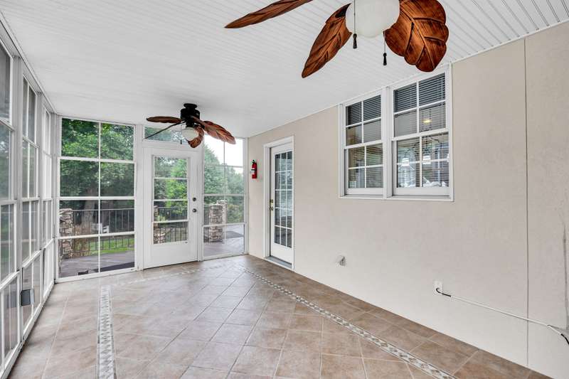 OUTSTANDING property at #15 Green/Fairway at Stoney Creek Golf Community. Impressive 2-story great room features 2 story Tennessee stacked "stone" fireplace w/gas logs which also opens to main floor primary BR. The 75" tv remains! Primary bath and shower have been updated w/granite shower and tub surround. Heated Travertine tile floors. Large kitchen w/quartz countertops, work island, breakfast area, light cabinetry. Main floor screened porch w/EZE open windows & tile floors. Large upstairs bonus has closet. Side entry 3 car garage,tankless hot water heater in crawl. Pull down attic storage in garage plus walk-in storage on 2nd flr -accessed through former wine cellar room. Irrigation & lovely landscaping. Nature walking trail at rear. Roof 2018, gas heat down 2021, upstairs 2008. Masonry rear porch offers plenty of space for entertaining or hot tub enjoyment. PROPERTY TO BE SOLD IN AS/IS CONDITION