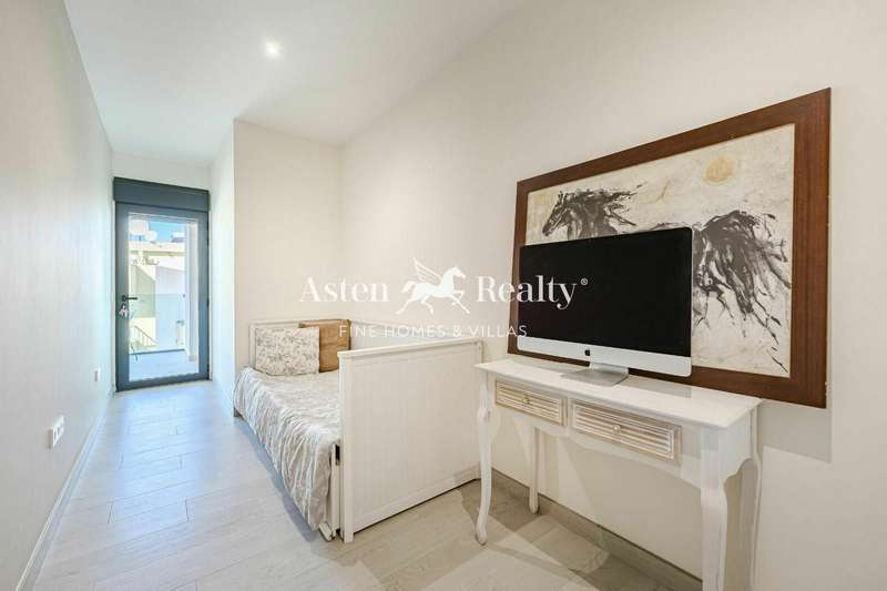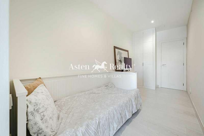 The bedrooms are a haven of tranquility: the master bedroom features an en-suite bathroom by Porcelanosa, a spacious walk-in closet, and a Tempur bed that promises ideal rest. The second bedroom, cozy and functional, reflects the same level of care and style.