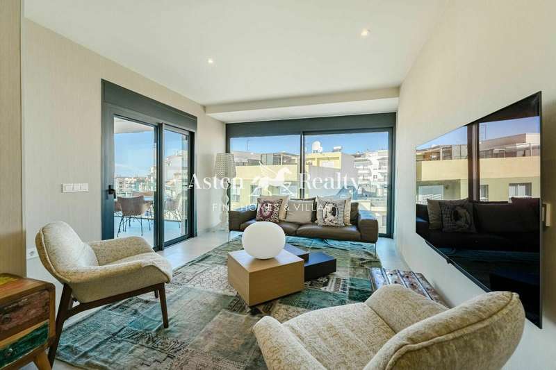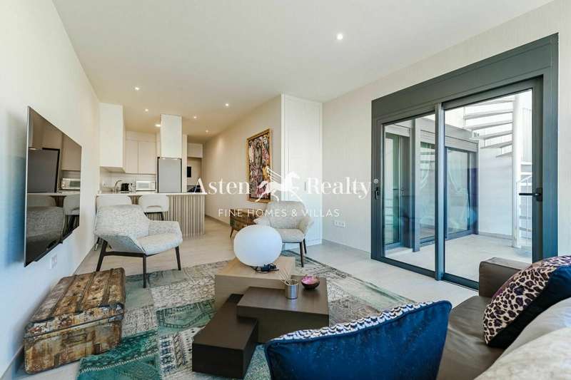 The living room, furnished with Roche Bobois and Fatboy pieces, is a space where modern design meets the warmth of a home. The open kitchen, equipped with Siemens and Samsung appliances, invites you to create unforgettable moments while enjoying the natural light that floods every corner.
