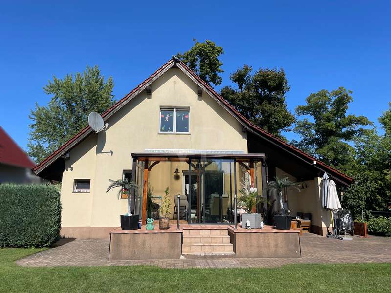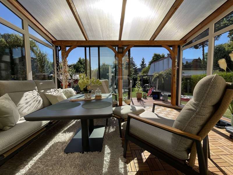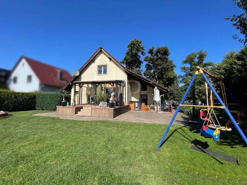 This charming and lovingly maintained detached house from around 1916 combines the nostalgic character of a historic building with the comfort of modern living quality. Situated on a spacious and sunny plot of approx. 658 m², it offers plenty of space for individual living, relaxed enjoyment and creative garden design. The living space comprises approx. 80 m² and is complemented by a light-flooded conservatory of approx. 14 m², which offers a view of the idyllic garden and fills the house with a particularly friendly atmosphere. You can feel the inviting atmosphere as soon as you enter the house. The central hallway is accessed via the vestibule. To the right is the cozy kitchen, which offers practical storage space with an additional cupboard. To the left is the friendly bathroom with bathtub. Straight ahead is the cozy living room, which impresses with its direct access to the sunny conservatory and the spacious terrace - a perfect place for relaxing hours or sociable evenings. The staircase leads to the upper floor, which has two further bright rooms and a modern bathroom with a comfortable shower. The house has a total of three well-proportioned rooms and two tastefully furnished bathrooms, ensuring a high level of living comfort. In 2002, the top floor was stylishly extended and the entire building was extensively renovated to a high standard. This preserved the historic charm of the year of construction while combining it with contemporary features. Some windows were replaced with particularly energy-efficient, triple-glazed models in 2023. The fittings are also impressive: practical roller shutters ensure comfort and security, while a spacious garage offers additional space. The outdoor area is a real highlight - a high-quality shed, an inviting pavilion and the sunny terrace create an atmospheric ensemble. Particularly noteworthy is the well-designed, lovingly landscaped garden, whose cozy atmosphere makes it a true oasis of relaxation. The house is complemented by a partial basement, which provides useful storage space. The location of the house is just as attractive as the property itself. It is located in a great, quiet residential area that guarantees a high degree of relaxation and privacy. At the same time, it is extremely well connected: conveniently located, you can quickly reach the surrounding towns. Shopping facilities for daily needs and other infrastructure are also within easy reach - this home combines idyllic living with practical proximity to everything you need. This detached house combines historical charm, modern living comfort and a cozy atmosphere. Whether as an idyllic home for a family or as a stylish retreat for couples - a property with character, charm and many amenities awaits you here.