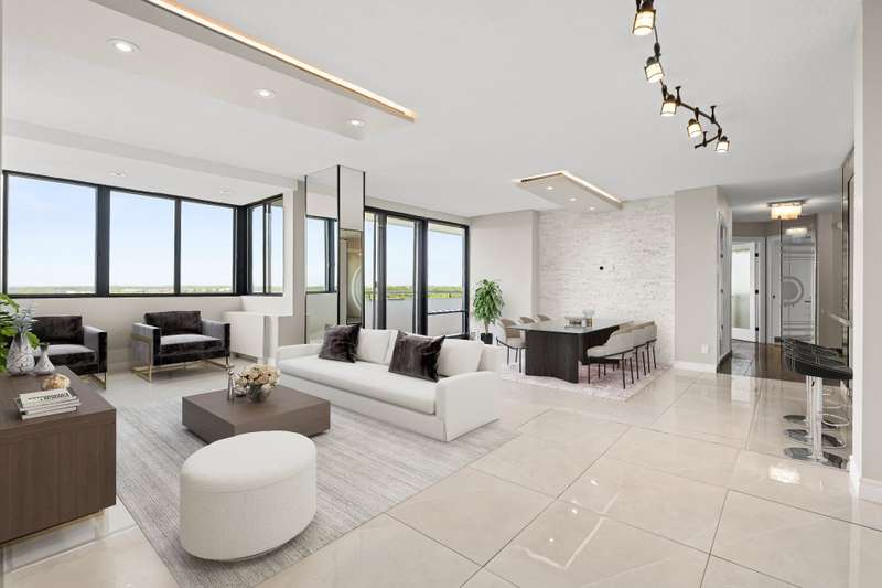 Welcome to Terrasse Paton, a beautifully maintained building offering resort-style living with outstanding amenities. Enjoy both indoor and outdoor heated pools, a relaxing spa, a fully equipped gym, billiards room, lounge, reception hall, craft room, and a cozy library. This recently renovated condo features a brand-new kitchen with granite countertops and ceramic flooring, elegant hardwood floors throughout, and sophisticated crown molding. Two charming French doors open onto private terraces with picturesque views of the garden and water. A perfect blend of comfort, style, and convenience -- don't miss this exceptional opportunity!