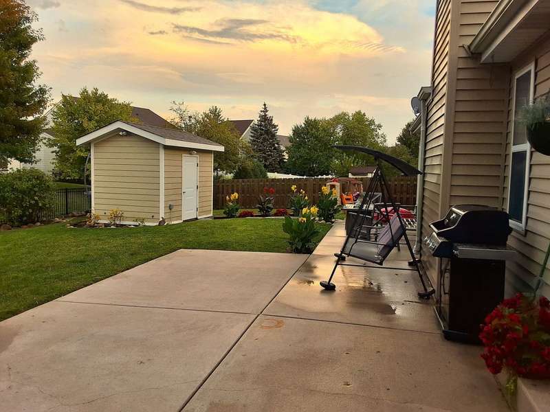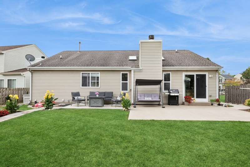 Step inside this beautiful, well maintained Ranch home in the idyllic community of Meadowbrook. Immediately upon entering your gaze will be drawn to the soaring vaulted ceilings of the expansive great room which are highlighted by ceramic tile floors, 2 skylights, a cozy gas fireplace, and a new slider to your own backyard oasis. The kitchen offers SS appliances, Corian countertops, a breakfast bar enhanced by white shiplap paneling, and a spacious and bright dining area thanks to the natural light that filters through the lovely bay window. The main level hallway leads to bedrooms 2 &3 and the spacious primary suite that offers a walk-in closet and private full bath with dual sinks, a soaker tub, a separate shower, and heat lamps. The full hall bath completes the main level. Downstairs, the full basement is ready for your finishing touches. There is an additional bedroom / flex space that has already been completed, and rough-in plumbing for future expansion of an additional bathroom. Adding to that the basement has been waterproofed, not due to any issues but as a preventive measure. Additionally, the sellers extended the concrete patio adding beautiful black aluminum fencing which enhances the walkway to the backyard, a trellis for both beauty and privacy, installed rain drain tiles, ran electric to the shed. The River Rock stone facade adds the finishing touch to this home. Updates include: Roof (2010), Sump Pump (2018), Hot Water Heater (2019), AC condenser (2023), Furnace (2023), slider to backyard, new windows in bedrooms 2 and 3, and primary ensuite. Don't miss this opportunity to own a home with thoughtful upgrades inside and out!