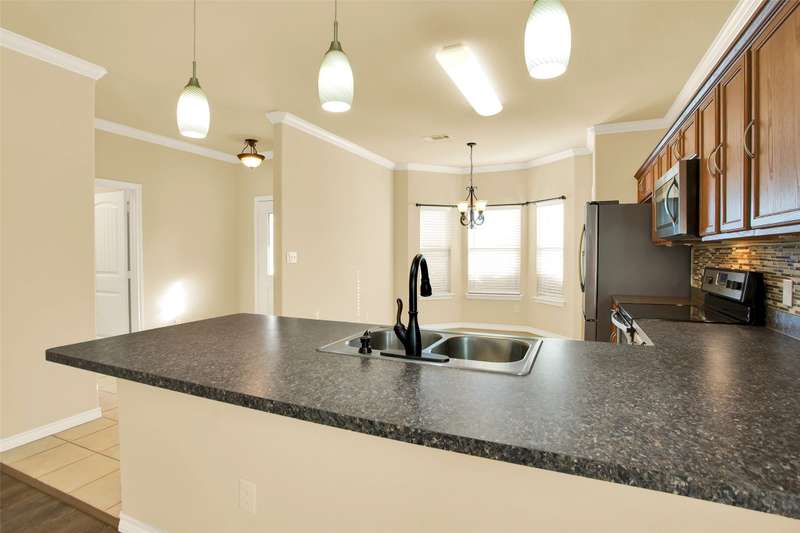 Charming 3 bed, 2 bath home on a CUL-DE-SAC and NO HOA in booming Denison, Texas with the option of an assumable loan! The home boasts a spacious open concept living and dining area ideal for family gatherings or entertaining guests. The open kitchen is a standout and comes equipped with a range-oven, microwave, garbage disposal, dishwasher PLUS a SAMSUNG French Door stainless steel refrigerator with icemaker! A cozy breakfast nook and large kitchen breakfast counter offers additional dining space. The home features a split bedroom layout, ensuring privacy and comfort. The primary suite is spacious and inviting, with dual sinks in the master bath, a luxurious walk-in shower, and a walk-in closet offering plenty of room for your wardrobe. Outside, the huge private backyard has a covered patio and charming gazebo, ideal spots for outdoor gatherings or quiet relaxation. An 8'x12' shed with loft offers storage for lawn equipment. The home has gutters plus an efficient sprinkler system. A nice Low-E windows and a radiant barrier can help reduce energy consumption making the home more environmentally friendly and potentially lowering utility bills.Located in the sought-after Pinnacle Park Addition in Denison, this home is conveniently situated between Sherman and Denison, with easy access to US 75, Texoma Medical Center, shopping, restaurants, and more. Experience the perfect blend of comfort, style, and convenience in this lovely home!