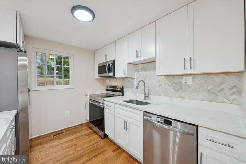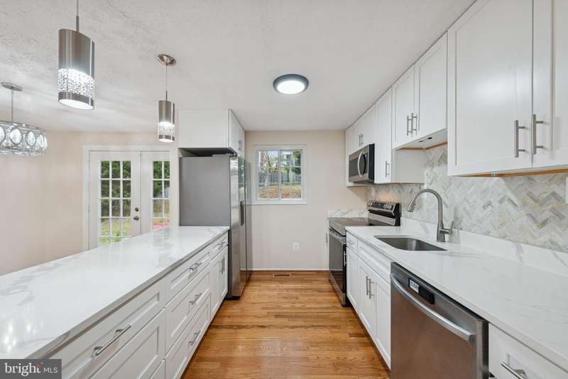 Open layout, renovated interior, attached garage, and a great backyard - this home checks all the boxes! Welcome to this tastefully updated split-level in the desirable Franklin Square community, offering a move-in-ready blend of style, comfort, and convenience. Inside, you'll find 3 bedrooms and 2 updated bathrooms, along with a bright and airy main level featuring gleaming hardwood floors and an open flow that enhances everyday living. The modern kitchen is complete with stainless steel appliances and opens to the dining area with direct access to the spacious deck - perfect for entertaining, grilling, or relaxing while overlooking the spacious backyard. The finished lower level adds valuable living space with a generous family room, a versatile bonus room ideal for a home office, gym, or guest space, plus a separate laundry room with a washer and dryer included. Enjoy the added convenience of an attached garage for parking or storage. Peace of mind comes with major updates already done -main roof and HVAC replaced in 2022. Situated close to parks, shopping, dining, and commuter routes, this home offers the ideal mix of comfort, location, and turnkey living.