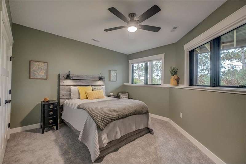 Situated within the New Richmond Golf Club community, this stunning 3 bed, 3 bath like-new home offers the ease of main-level living and over 3,000 square feet of thoughtfully designed space. Modern fixtures and finishes accent every room, creating a bright and welcoming atmosphere that carries through the open main level, where a spacious living room is anchored by a sleek gas fireplace and framed by large windows with western views overlooking the backyard. The stunning custom kitchen showcases Amish-built cabinetry, Bosch appliances including an induction cooktop, a walk-in pantry, and a dedicated coffee bar, while the generous mudroom doubles as a laundry room, complete with a sink, beautiful cabinetry, and plenty of counter space for everyday convenience. Retreat to the private primary suite offering an expansive walk-in closet and a gorgeous ensuite bath featuring double vanities, ample storage, and a beautiful walk-in tile shower. The lower level is designed for both relaxation and entertaining, complete with a cozy living room centered around a stylish fireplace, a beautiful bar and game area, and expansive storage.. Surrounded by mature trees, the spacious walkout deck and patio create an ideal outdoor retreat to unwind and take in the stunning sunsets—complemented by an oversized two-car garage with a dedicated side garage door for your golf cart. The association handles snow removal and lawn maintenance for added ease, allowing you to fully embrace a low-maintenance lifestyle. Experience year-round recreation with an 18-hole course right outside your door, a Links course across the street, and nearby walking, biking, and groomed winter trails for hiking, snowshoeing, and cross-country skiing. Restaurants, breweries, shopping, and medical facilities are just minutes away—close to the freeway for easy commutes and only 15 minutes from Stillwater. The perfect blend of comfort, craftsmanship, and convenience awaits at 1777 George Norman Drive.