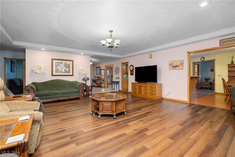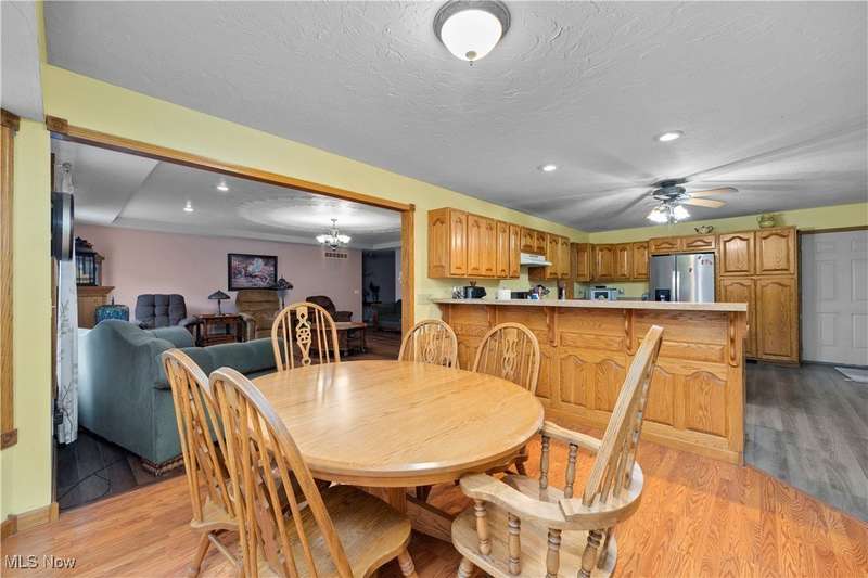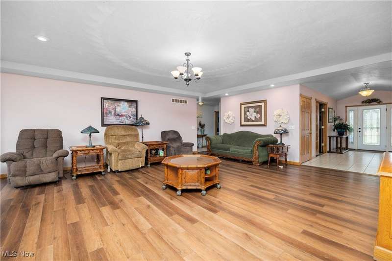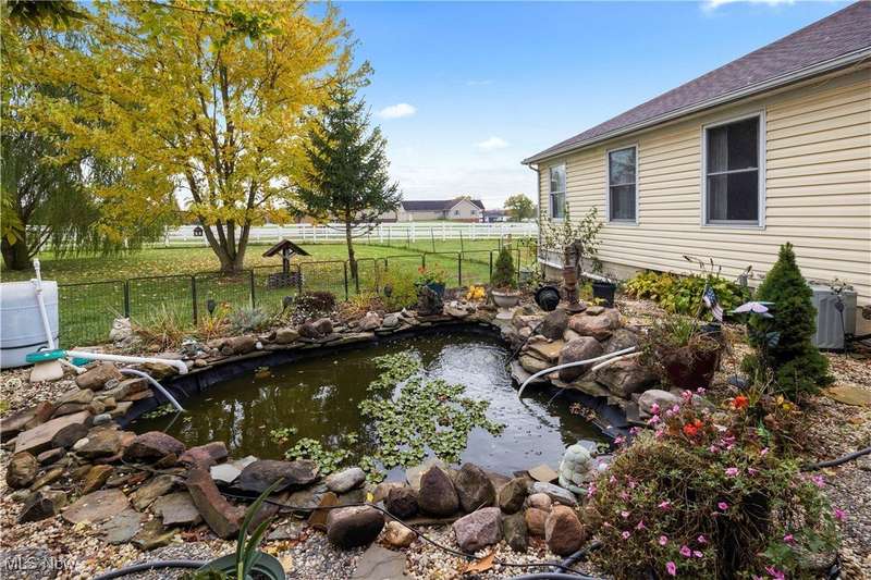 Welcome to 14951 Rickel Rd, West Salem. A custom-built ranch offering 5 Bed, 3.5 Bath and over 4,534 sq ft of finished living space, perfectly placed on 4.29 acres of serene, fenced countryside. Designed for comfortable multi-generational living, this one-owner home features extra-wide hallways, solid oak cabinetry, updated flooring, and main-level bedrooms with ensuite baths. The spacious kitchen includes an island and connects to a large living room, while the lower level boasts egress windows and a second full kitchen, ideal for an in-law suite. Step outside to enjoy the expansive covered deck, large koi pond, and a 5-stall horse barn within the vinyl-fenced pasture. Enjoy the privacy of a country lifestyle just minutes from I-71 & US-224.