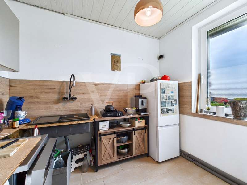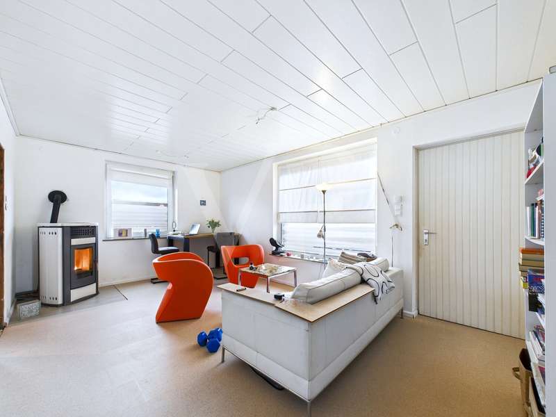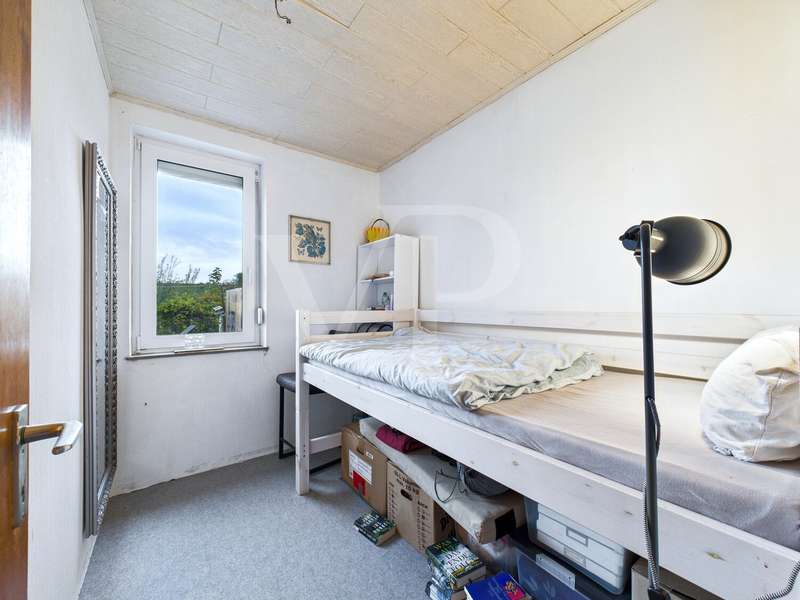 Welcome to this cozy bungalow house, which impresses with its well thought-out floor plan, ground-floor living comfort and great design potential. This is where solid building fabric, modernization work and creative possibilities come together - ideal for anyone who wants to design their own home. The approx. 50 m² living space is divided into three well-designed rooms, a kitchen, a bathroom and a hallway that connects all the rooms centrally. The living room is spacious and offers plenty of natural light thanks to its large windows - perfect for creating a cozy living and dining area. From here, you can enjoy a beautiful view of the greenery and have space for your individual furnishing ideas. The kitchen has already been fitted with new water pipes (2024) and is now awaiting your personal design. Here you can plan and implement your dream kitchen entirely according to your own ideas. The two bedrooms offer flexible usage options - whether as a master bedroom, children's room, guest room or home office. The bathroom is functional but in need of renovation - ideal for transforming it into a modern feel-good bathroom. A lot has already been invested technically: A pellet stove from 2024 provides pleasant warmth and a sustainable heating solution. The roof was already replaced around 2012 and is in very good condition - an important plus point for the building fabric. With a little craftsmanship and attention to detail, a real gem can be created here - a cozy bungalow with character and a future. This semi-detached bungalow combines the best of both worlds - a solid base with already renovated core components and enough space to realize your own living dreams. Ideal for couples, small families or those seeking peace and quiet who are looking for a charming home with development potential.