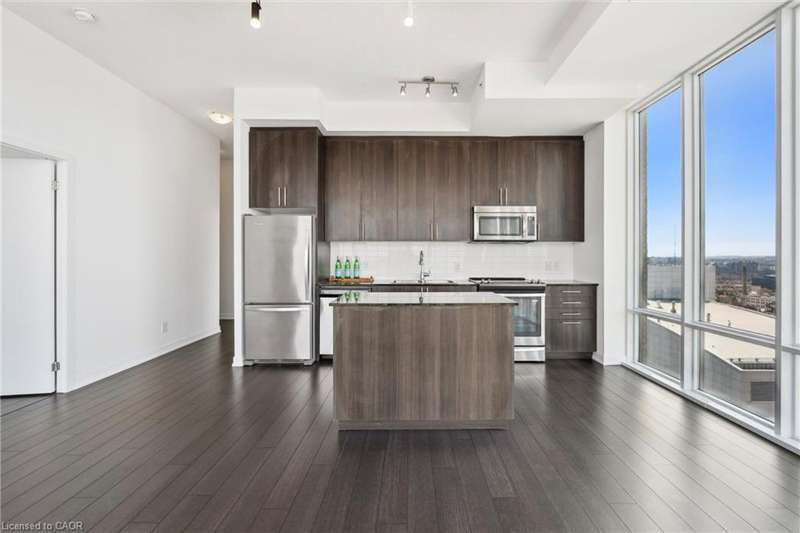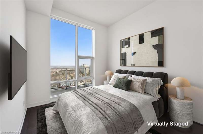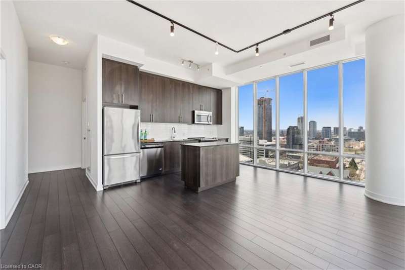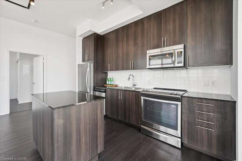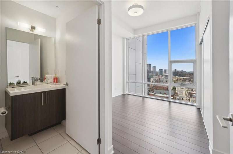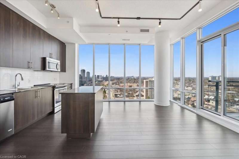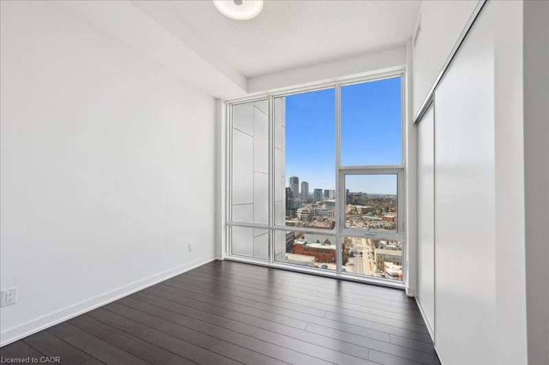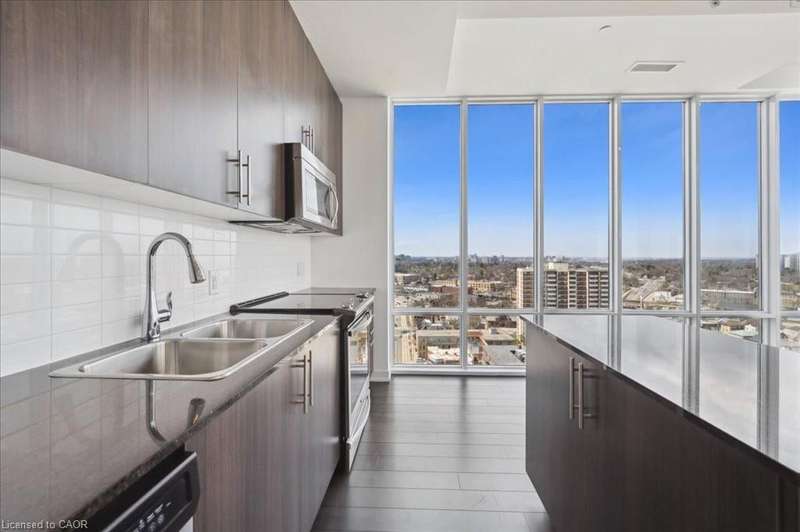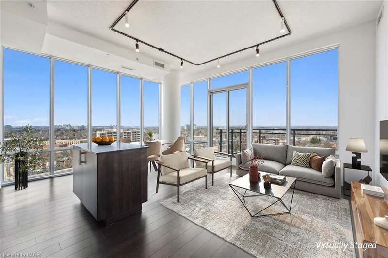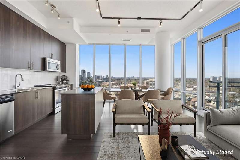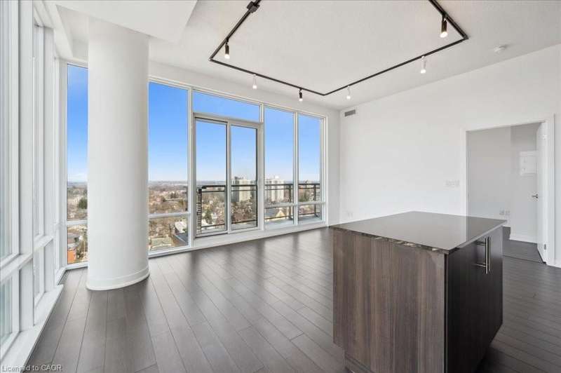 Experience unparalleled living in this unique corner PENTHOUSE—a rare gem with no upstairs neighbours! Bathed in NATURAL LIGHT, this bright 2-bedroom condo features 10-foot CEILINGS and floor-to-ceiling WINDOWS that frame breathtaking city VIEWS from your private 110 sq. ft. BALCONY. The sleek, MODER KITCHEN is a chef's delight, boasting full-height cabinetry, GRANITE COUNTERTOPS, upgraded stainless steel APPLIANCES, and a versatile MOVABLE ISLAND. Both bedrooms are generously sized, with the primary offering a private en-suite. Enjoy CARPET-FREE living, in-suite LAUNDRY, and ample STORAGE. This is the only PENTHOUSE of its kind available, perfectly positioned next to CITY HALL with the ION LRT at your doorstep. Step out to vibrant King Street’s SHOPS and RESTAURANTS, then retreat to your quiet oasis above it all. Residents enjoy a 7-day CONCIERGE, lounge, panoramic rooftop TERRACE, and a modern GYM. Underground PREMIUM PARKING and a storage LOCKER complete this exceptional offering.