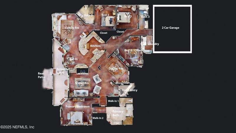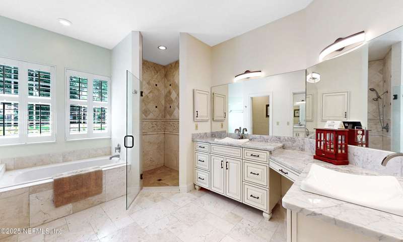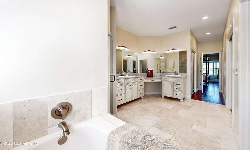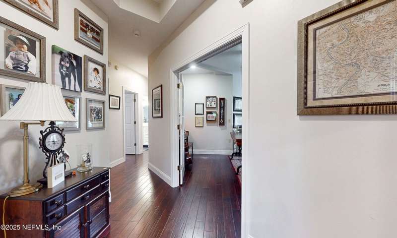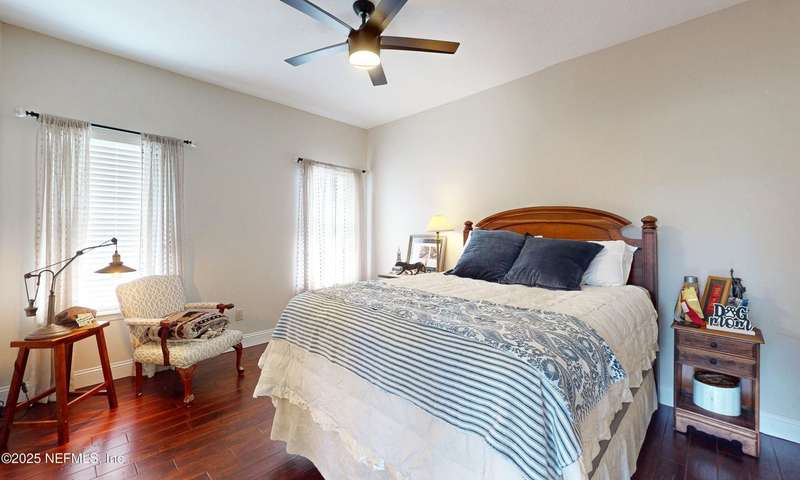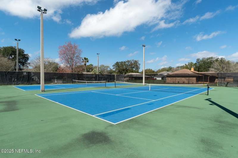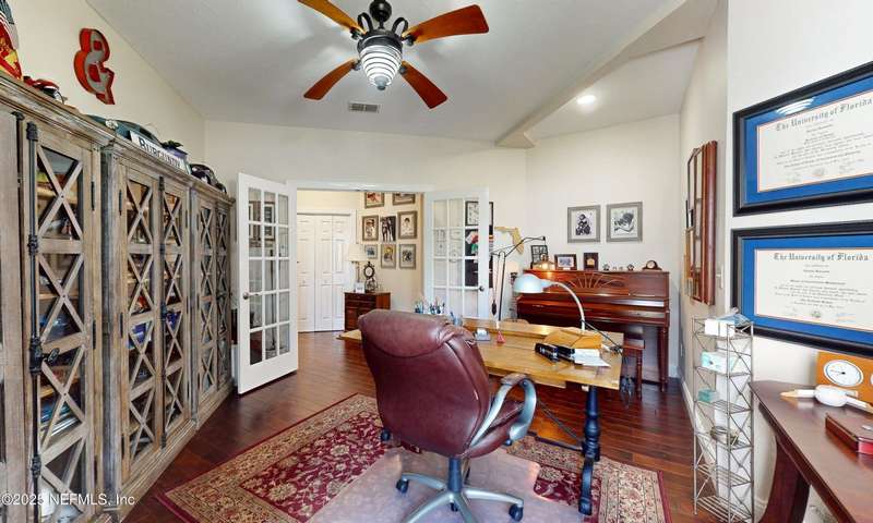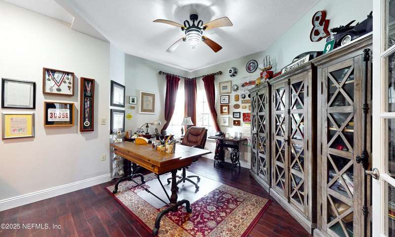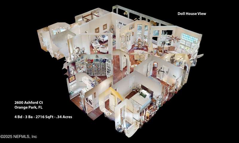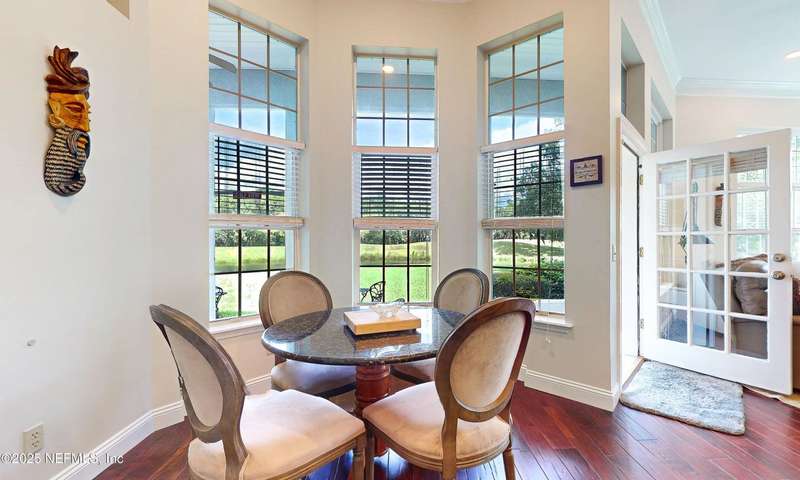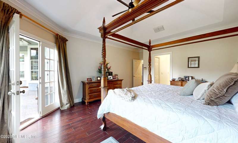 GATED COMMUNITY Truly a one of a kind, well maintained, beautiful home w/ a magnificent waterfront view. The eye-catching details start at the new double front doors then you are awed by the 12-foot ceilings, wood floors & that view! The living room has a gas fireplace w/ access to the screened lanai & views of the water & course. The spacious dining room is ready for all your holiday gatherings. The kitchen is sure to delight any chef with Kraftmaid cabinets, eat-in nook, gas stove, farmhouse sink & built-in oven & microwave. The family room has panoramic views of the water & course w/ access to the screened lanai. The bedrooms are a 3-way split floor plan. The primary suite is like a private oasis w/ a jetted tub, walk-in closets, custom double vanity, tray ceiling, access to the lanai & a peaceful view. Bedroom 2 located off of the family room & has its own dedicated bath. Bedrooms 3 & 4 are down a separate hallway w/ 3rd bathroom. Bedroom 4 is used as an office (no closet) You will love the huge laundry room with extra cabinets and mud sink. There is also a 2-car garage and a fenced side yard for your little ones or your furry friends. Amenities include frisbee golf, pools, tennis courts, pickle ball, 24hr guarded gate and playground. RV parking and stables are offered nearby with easy access at Spencer Farms. Make sure you check out the website for Orange Park Country Club for more info. Roof was replaced in September 2024. This is not your average home- come see for yourself!