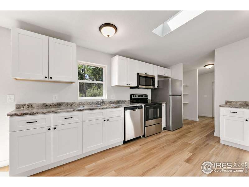 Newly redone house on ~1/3 acre. No HOA. Property backs to Lions Open Space (owned by State of Colorado Division of Wildlife) and the Poudre River. New this summer ... flooring, cabinets, countertops, appliances, bathroom fixtures, drywall, windows, sliding glass door, front storm door, and water heater. All newly painted, both interior and exterior. New furnace in Oct-2024. Evaporative cooler on roof is working. New grass in the front yard. Part of the backyard is fully fenced. Same owner for the last 23 years. Easy access to all that Northern Colorado has to offer. Grocery and hardware store are less than mile away. Home has been pre-inspected and First American Home Warranty provided. Outbuilding does exist in the backyard but needs a lot of attention.