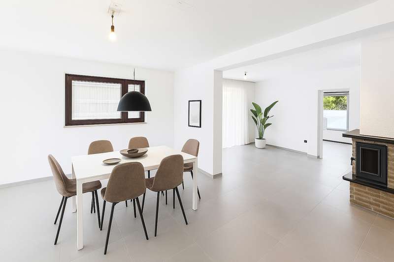 This spacious detached house is located in Cologne-Delbrück, one of the most popular and family-friendly districts in the east of Cologne. With a living space of approx. 246 m² and an additional approx. 64 m² of usable space, the property offers plenty of room for comfortable living, individual design and flexible usage options - ideal for families, home offices or multi-generational living. The house was built in 1981 in solid solid construction and extends over three floors as well as a fully usable basement. The seven well-designed rooms can be adapted to suit different phases of life and living requirements. On the first floor, you will find an open, bright living and dining area with direct access to the spacious sun terrace and the peaceful garden. The bright living area is complemented by a fireplace, which creates a cozy atmosphere. The kitchen with adjoining dining area forms the central meeting point in everyday life. Underfloor heating throughout the house ensures even warmth and living comfort on all levels. The upper floor houses four bedrooms, two of which offer direct access to the balcony. Electrically controlled shutters on all windows on this floor further enhance living comfort. Two spacious family bathrooms both have access to the shower and offer enough space for the whole family. An even larger bathroom could be created here in the future by combining them. There is another large room on the top floor, which is ideal as a studio, work area or guest room. A private bathroom with bathtub and shower as well as existing kitchen connections make this floor completely independent. The basement also impresses with its versatility: in addition to traditional cellar rooms, there is a large hobby room that is ideal for sports, workshops or leisure activities. The outdoor area has been lovingly landscaped and is complemented by a large terrace and a practical cistern for watering the garden. A spacious, electric double garage and an additional carport are available for vehicles. A photovoltaic system installed in 2010 helps to reduce electricity costs and at the same time makes a sustainable contribution to the energy supply. The house is in a well-kept condition and at the same time offers plenty of potential for individual modernization in order to adapt it to today's living standards and personal ideas. It combines solid construction quality, generous living space and a quiet location - an ideal home for anyone looking for space to develop.