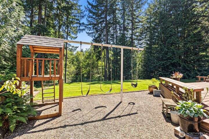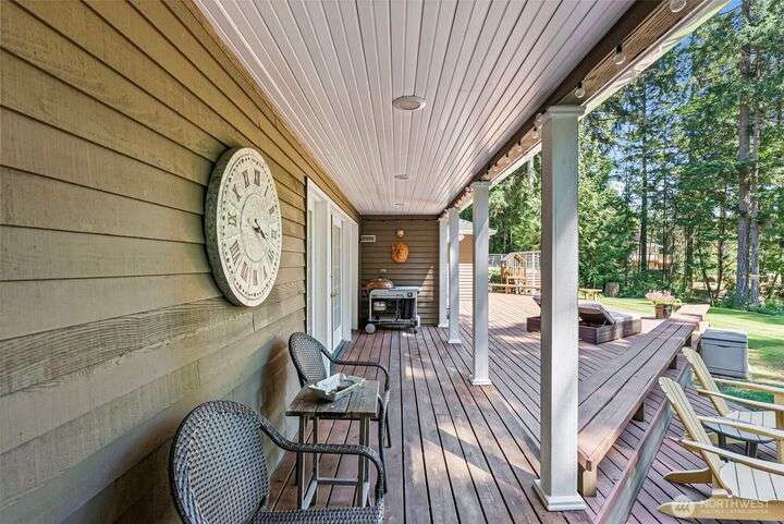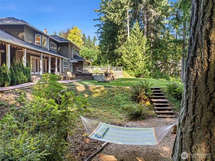 Discover your dream home in this stunning, beautifully updated, and meticulously maintained 4-bedroom custom residence, just minutes from Narrows Bridge yet offering a serene escape. The gourmet kitchen showcases Calcutta Gold marble countertops, Wolf and Subzero appliances, and custom white cabinetry, all set against elegant oak floors. Enjoy the spacious game room on the main floor and the luxurious primary bathroom featuring marble accents, a freestanding tub, and a no-door shower. Primary bedroom is a true retreat with a cozy fireplace and a relaxing sitting area. Experience a touch of aloha in the fun tiki-room on lower level. Expansive, partially covered south-facing deck provides the perfect spot to unwind! Vacant lot avail next door