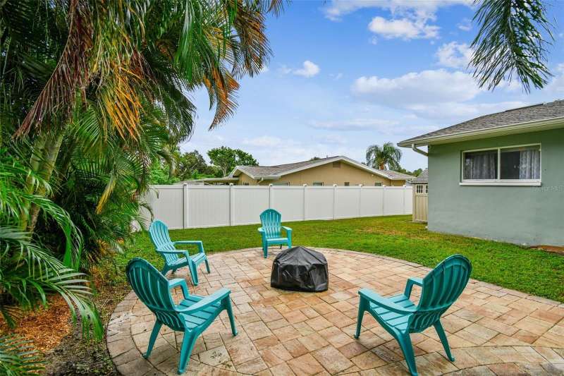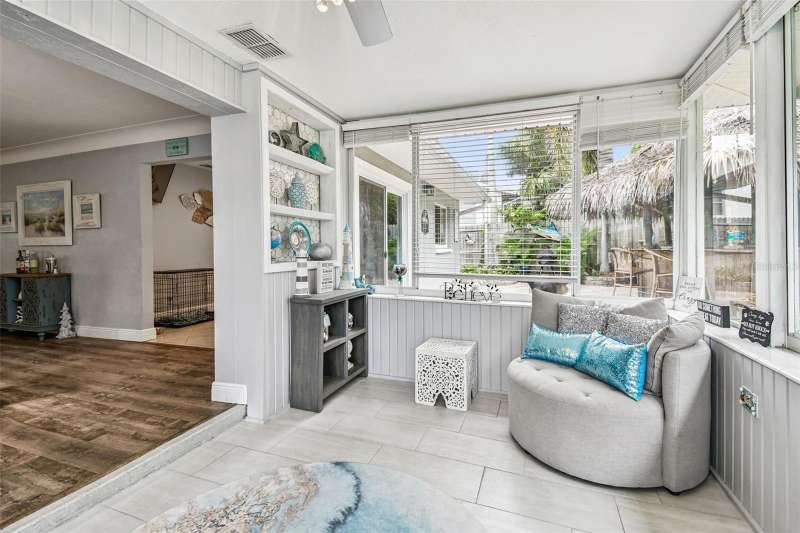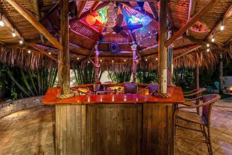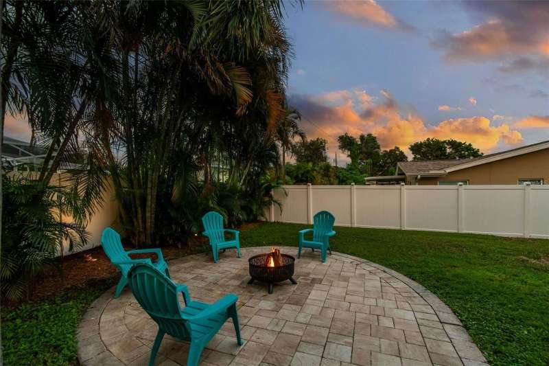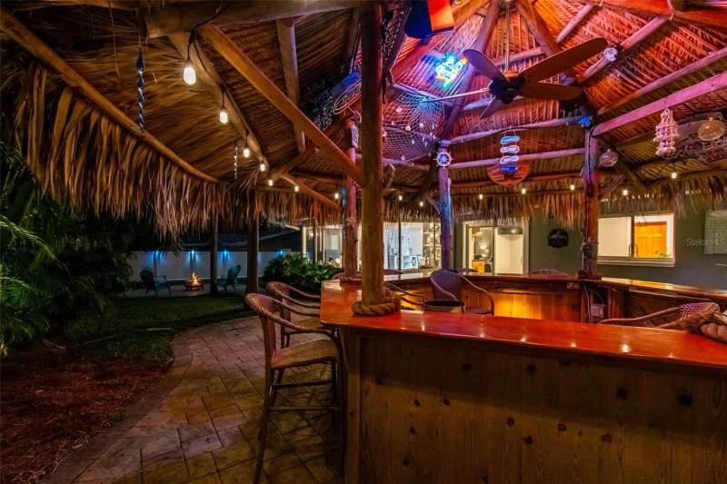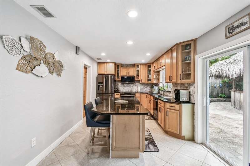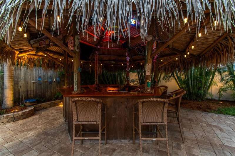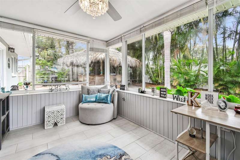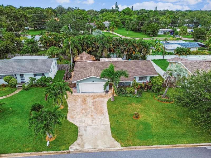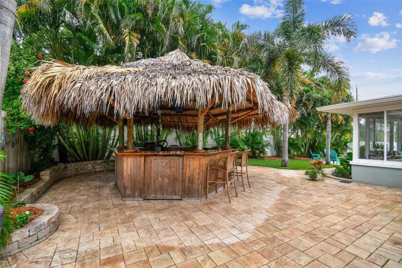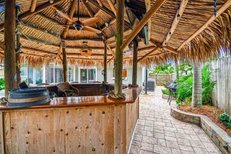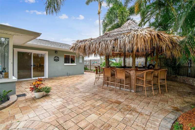 Welcome to your dream entertainer’s paradise at 2961 Fountainhead Dr, the epitome of Florida living now offered at a new price! This stunning home showcases impressive curb appeal with a paver driveway and vibrant tropical landscaping, featuring majestic Florida palms that gracefully wrap around the property. Newly enhanced landscape lighting creates a tranquil, inviting ambiance during evening hours. A paved walkway leads you to the ultimate backyard oasis—a tropical haven featuring one of the area’s most impressive island-style Tiki Huts. Spacious enough to seat at least 10 of your closest friends, this Tiki Hut is wired for electricity, complete with outlets, lighting, and even a couple of neon bar lights and a TV, all left by the sellers. It’s the perfect spot for evening cocktails, gatherings, and cookouts. Continue along the paver pathway to the fire pit, ideal for roasting marshmallows and enjoying cozy winter nights under the stars. Step inside through the brand-new high-end contemporary front door and be welcomed into a bright, open living and dining area that seamlessly flows into the refreshed Florida Room. This versatile flex space, filled with natural light from wall-to-wall windows, can serve as a guest room, office, playroom, or anything your heart desires. The updated kitchen boasts beautiful granite countertops, sleek high-end black stainless Samsung appliances, and a newly installed hurricane-rated sliding glass door that opens to your backyard paradise. Recent kitchen refreshes enhance its modern appeal, making it a true culinary delight. On the opposite side of the home, you'll find two generously sized bedrooms separated by a beautifully remodeled bathroom featuring contemporary, on-trend finishes. The ceilings throughout the home are elegantly finished and stand just over 8 feet tall, adding to the spacious feel. The attached two-car garage offers ample storage and durable garage tile flooring. Just inside from the garage, you'll find an updated second full bathroom and a convenient laundry room connected to the kitchen. Numerous upgrades enhance this exceptional home, including: Roof, soffits, gutters, and porch columns replaced in 2016 Paver driveway, porch, walkway, and patio added in 2016 New AC installed in 2021 Main bathroom remodeled in 2023 Recent refreshes to the kitchen and Florida Room Perfectly positioned in unincorporated Largo, FL, this home is just minutes from Belleair Causeway boat ramps, marinas, fine dining, pubs, shops, the Pinellas Trail, parks, golf courses, and only 2.5 miles from the world-renowned sugar-soft white sand beaches of the Gulf of Mexico. This truly one-of-a-kind home awaits its next owner—don’t miss this incredible opportunity!
