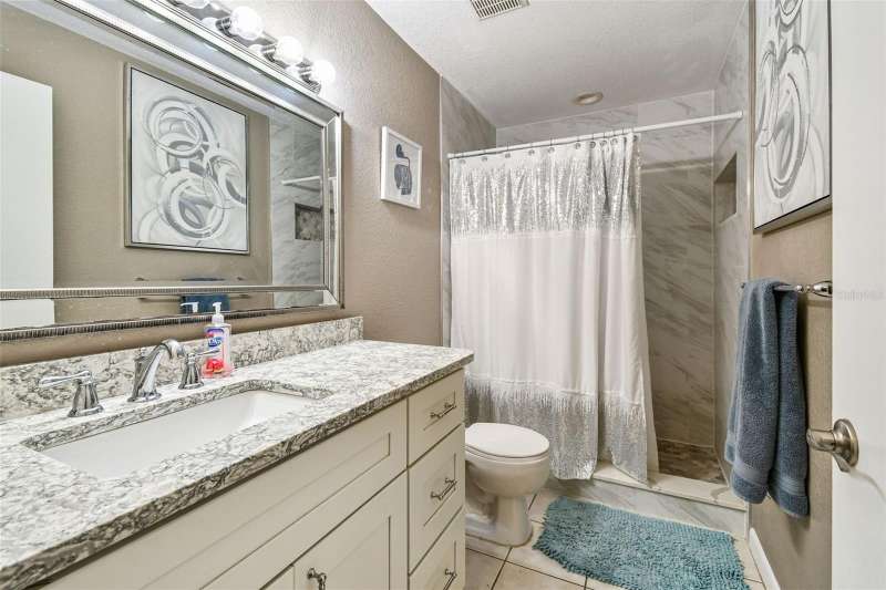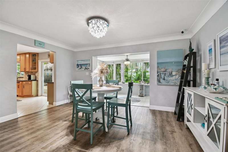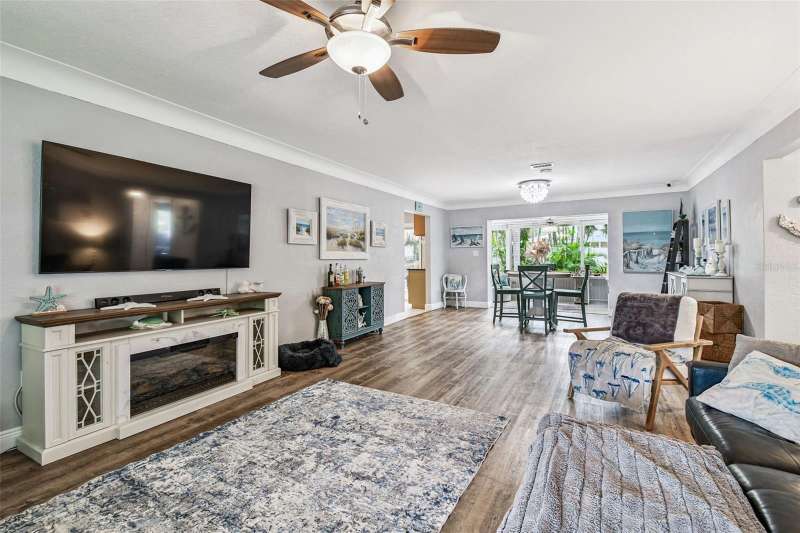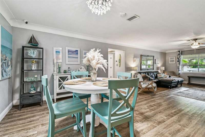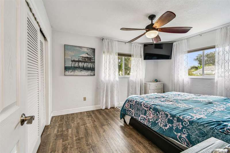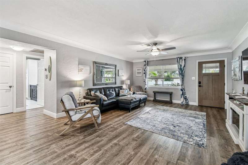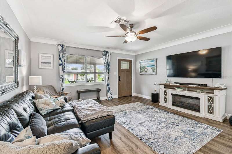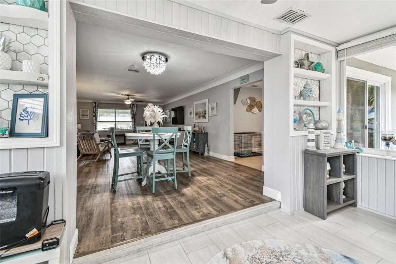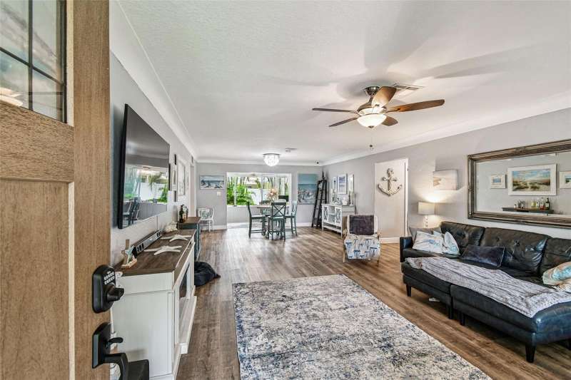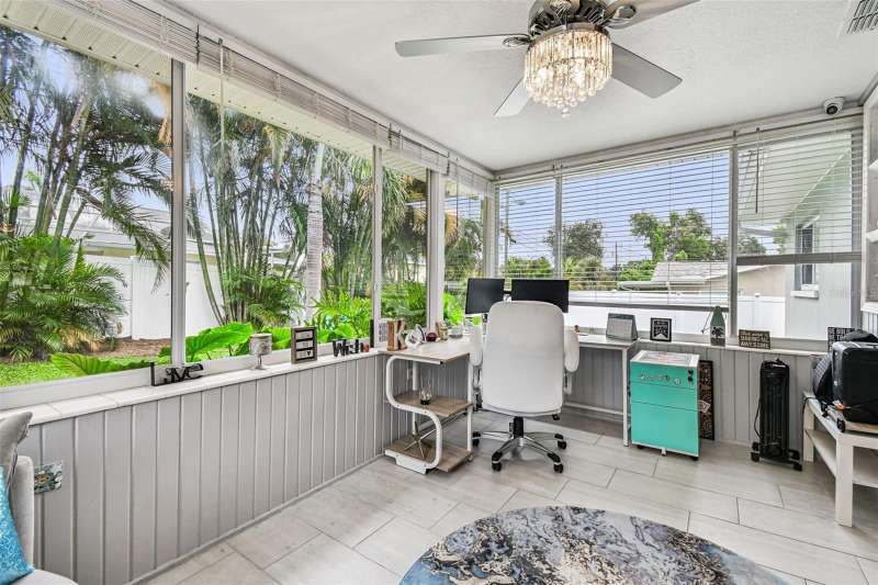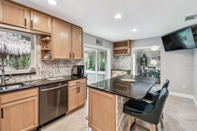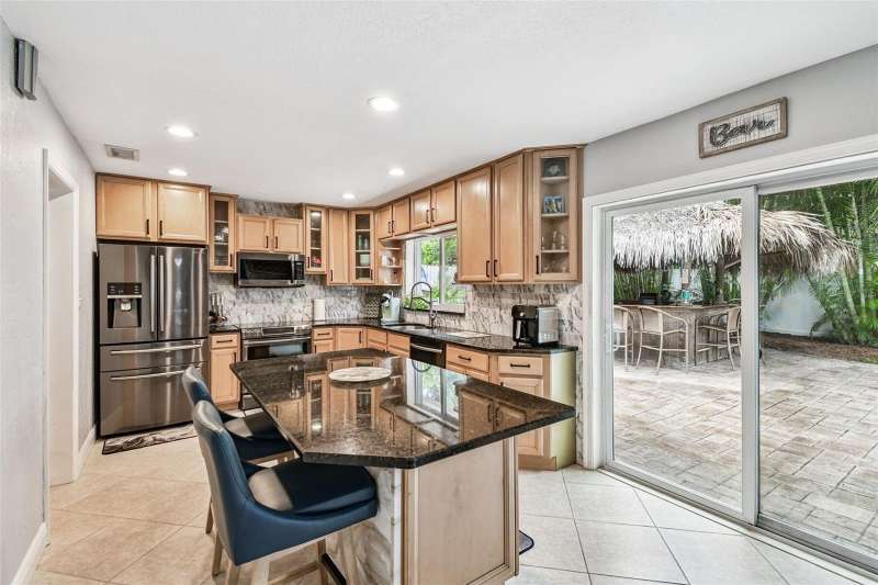 Welcome to your dream entertainer’s paradise at 2961 Fountainhead Dr, the epitome of Florida living now offered at a new price! This stunning home showcases impressive curb appeal with a paver driveway and vibrant tropical landscaping, featuring majestic Florida palms that gracefully wrap around the property. Newly enhanced landscape lighting creates a tranquil, inviting ambiance during evening hours. A paved walkway leads you to the ultimate backyard oasis—a tropical haven featuring one of the area’s most impressive island-style Tiki Huts. Spacious enough to seat at least 10 of your closest friends, this Tiki Hut is wired for electricity, complete with outlets, lighting, and even a couple of neon bar lights and a TV, all left by the sellers. It’s the perfect spot for evening cocktails, gatherings, and cookouts. Continue along the paver pathway to the fire pit, ideal for roasting marshmallows and enjoying cozy winter nights under the stars. Step inside through the brand-new high-end contemporary front door and be welcomed into a bright, open living and dining area that seamlessly flows into the refreshed Florida Room. This versatile flex space, filled with natural light from wall-to-wall windows, can serve as a guest room, office, playroom, or anything your heart desires. The updated kitchen boasts beautiful granite countertops, sleek high-end black stainless Samsung appliances, and a newly installed hurricane-rated sliding glass door that opens to your backyard paradise. Recent kitchen refreshes enhance its modern appeal, making it a true culinary delight. On the opposite side of the home, you'll find two generously sized bedrooms separated by a beautifully remodeled bathroom featuring contemporary, on-trend finishes. The ceilings throughout the home are elegantly finished and stand just over 8 feet tall, adding to the spacious feel. The attached two-car garage offers ample storage and durable garage tile flooring. Just inside from the garage, you'll find an updated second full bathroom and a convenient laundry room connected to the kitchen. Numerous upgrades enhance this exceptional home, including: Roof, soffits, gutters, and porch columns replaced in 2016 Paver driveway, porch, walkway, and patio added in 2016 New AC installed in 2021 Main bathroom remodeled in 2023 Recent refreshes to the kitchen and Florida Room Perfectly positioned in unincorporated Largo, FL, this home is just minutes from Belleair Causeway boat ramps, marinas, fine dining, pubs, shops, the Pinellas Trail, parks, golf courses, and only 2.5 miles from the world-renowned sugar-soft white sand beaches of the Gulf of Mexico. This truly one-of-a-kind home awaits its next owner—don’t miss this incredible opportunity!