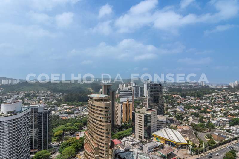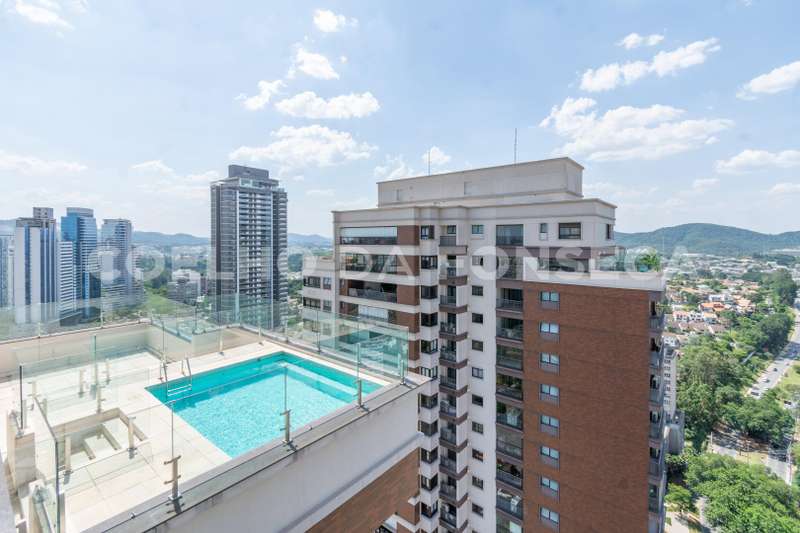 Edifício Myrá, cobertura exclusiva. Apartamento com 4 suítes com varanda, living para 3 ambientes, cozinha com área gourmet integrada, lavabo, lauge, terraço e piscina. 7 vagas de garagem sendo 1 box. Vista maravilhosa. Um dos melhores apartamentos de Alphaville.