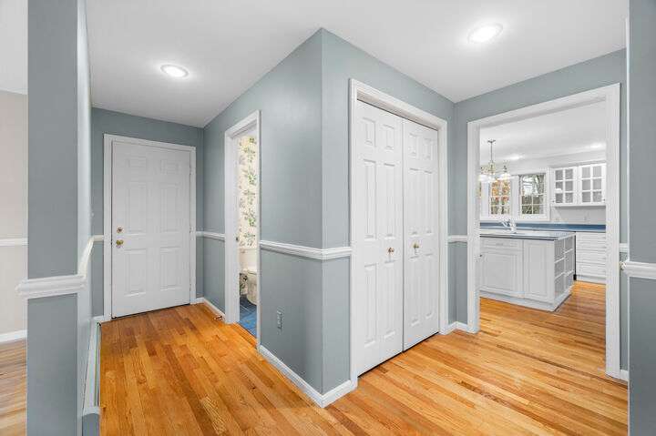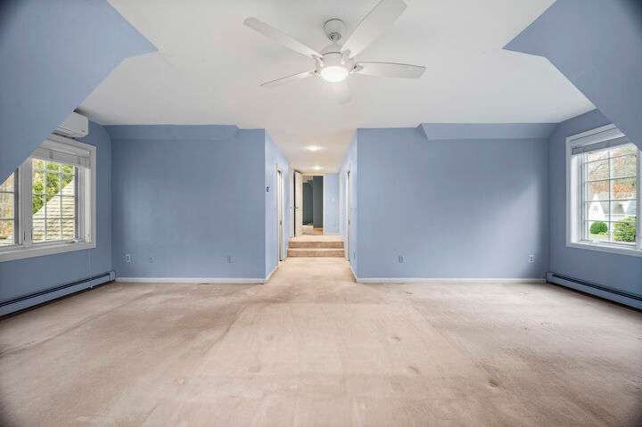 Architecturally charming and unique Cape-style home in highly desirable York River Farms! This 3-bedroom, 2.5-bath residence combines warmth, light, and thoughtful design throughout. The main living room features a gas fireplace, custom built-in shelves, and large windows that fill the space with natural light. Just beyond is a lovely reading room or potential home office, ideal for working from home or relaxing with a book. The kitchen is a true highlight with two gas ovens, gas cooktop, large center island, and generous storage. Hardwood floors flow through the main living areas, connecting the kitchen to both a cozy sitting area and an inviting dining space. Off the kitchen, enjoy a comfortable living nook that opens to a private back deck—perfect for morning coffee, grilling, or outdoor entertaining. A formal dining room adds elegance and flexibility for gatherings. The first floor also offers a half bath, plentiful closets, and direct access from the two-car garage. Upstairs you'll find three spacious bedrooms and two full baths, including a serene primary suite with two walk-in closets, large bath, and its own mini-split for personalized heating and cooling. This home offers a second mini-split downstairs, propane heat, public water and sewer, and a layout designed for comfort and function. Residents of York River Farms enjoy access to the York River for kayaking and paddleboarding, all just minutes from York Village, beaches, and Route 1. A rare opportunity to own a home that beautifully blends classic New England character, modern convenience, and coastal Maine living!