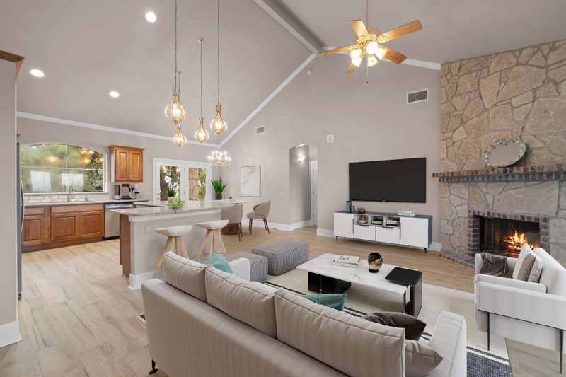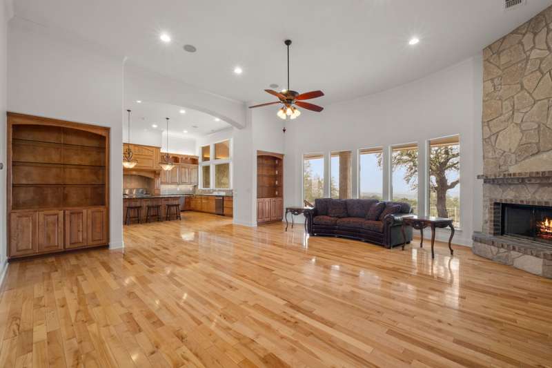 Tucked away in the rolling landscapes of Spring Branch, Texas, this Mike Dawson Custom Home is a symphony of luxury, comfort, and Hill Country charm. Set on over five private acres, this estate is designed for those who seek serenity without sacrificing sophistication. As you approach, the beauty of the natural surroundings sets the stage, offering a sense of peace and exclusivity. Step inside, and you're greeted by soaring ceilings, pristine oak wood flooring, and walls of windows, flooding the space with natural light and framing breathtaking views of the rolling Hill Country terrain. The open-concept design creates a seamless flow-perfect for both grand entertaining and intimate family moments. The heart of the home is its gourmet kitchen, a culinary sanctuary thoughtfully designed for those who love to cook and entertain. Outfitted with a Five Star six-burner gas range, stainless steel double-door refrigerator, two dishwashers, and a built-in wine refrigerator, this kitchen blends high-end functionality with refined aesthetics. Granite countertops provide an elegant workspace, while the sink overlooks serene views of the resort-style pool and rolling Hill Country landscape. Just beyond, the formal dining room elevates every meal with its tray ceiling and refined ambiance, creating the perfect setting for intimate dinners or grand social gatherings. The main living area is nothing short of spectacular. Anchored by a custom rock gas fireplace, it exudes warmth and elegance, inviting gatherings, conversations, and cozy evenings by the fire. Thoughtfully designed custom built-ins add both character and functionality, while a state-of-the-art intercom system ensures effortless connectivity throughout the home. For those who cherish entertainment, the media room with a projector setup offers the ultimate retreat for movie nights, game-day excitement, or fun-filled sleepovers-a dedicated space designed for pure enjoyment. The primary suite is a sanctuary unto itself-a masterfully designed retreat that indulges the senses. A dual-sided gas fireplace flickers softly between the bedroom and spa-like en-suite bath, setting the tone for romantic evenings and tranquil mornings. The oversized soaking tub, spacious walk-in shower, and dual vanities create a lavish, spa-inspired experience, while the expansive walk-in closet offers ample storage and organization, ensuring every detail is effortlessly in place. A beautifully appointed guest house provides a luxurious yet inviting space for friends and family, featuring three bedrooms and two bathrooms, including a Jack-and-Jill bath with a glass-enclosed shower. Whether hosting overnight visitors or extended stays, this separate retreat ensures comfort, privacy, and style. Stepping outside, the true magic of this estate unfolds. With its rolling topography, mature live oak trees, and resort-style pool, this home offers an unparalleled connection to nature. Spend mornings savoring coffee on the covered patio, afternoons basking in the Texas sun by the pool, and evenings unwinding beneath a canopy of stars. Beyond its secluded setting, this estate is perfectly positioned-offering both privacy and convenience, with dining, shopping, and entertainment just minutes away. A home of this caliber and craftsmanship is a rare find. From its timeless design to its breathtaking surroundings, 1069 Fawn River Dr. is a Texas Hill Country experience waiting to be embraced. - 11/7/2025 3:16:07 AM