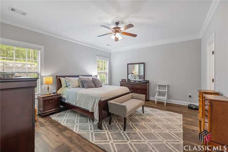 Located in one of Athens' most sought-after neighborhoods, this beautifully maintained two-story brick home located in the Putters Subdivision blends timeless style and comfort. The primary on the main floor is spacious and leads to a roomy primary bathroom with double sink vanities. The spacious layout upstairs features two bedrooms, which include an owner's suite with a private sitting area- perfect for a bonus room or home office. Two additional bedrooms upstairs are joined by a Jack and Jill bath. The open-concept kitchen flows effortlessly into the dining area and breakfast bar, creating an ideal space for both everyday living and entertaining. Step outside to enjoy a private patio and manicured backyard. This home offers both beauty and ease of maintenance. Community amenities include a clubhouse, fitness center, playground, putting green, sidewalks, streetlights, and included lawn care. A perfect blend of elegance, comfort, and convenience.