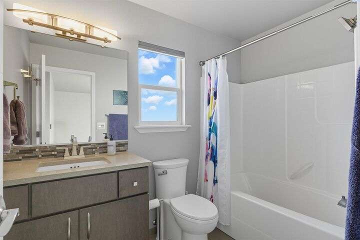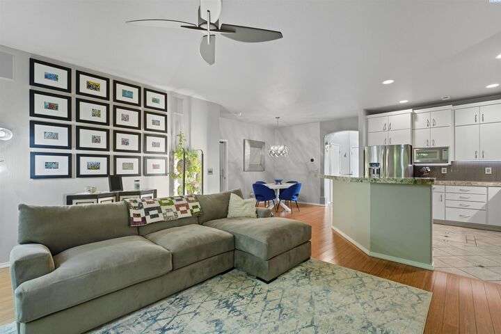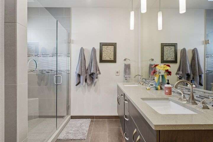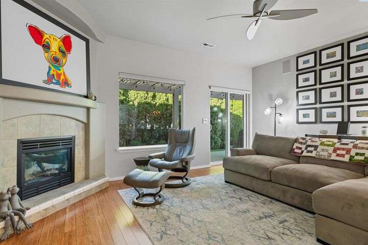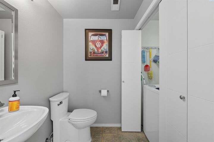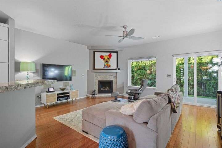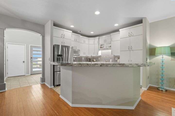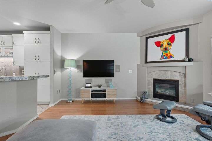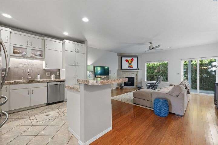 Welcome to this beautifully upgraded low-maintenance South Richland townhome. The main level features tall ceilings and modern lighting at the entry, an open kitchen with upgraded cabinetry, granite counters, tile backsplash, under-cabinet lighting, gas range, and a large island with bar seating. Right off the kitchen you will find a spacious living room with bamboo hardwood floors, corner fireplace, and surround sound extending to the private patio with pergola and gas BBQ hookup. Primary suite on main floor with spa-inspired bath with heated tile floors, floating vanity with accent lighting, dual sinks, and a tiled walk-in shower with rainfall head and exterior water controls. Upstairs are two additional bedrooms and a full bath with floating vanity and designer finishes, while a powder room and laundry are conveniently located on the main level. Extra highlights include Hunter Douglas remote-controlled window coverings, premium ceiling fans, upgraded lighting, and smart storage features throughout. Ideally situated near shopping, dining, parks, and walking trails, just down the street, this move-in ready townhome is truly one-of-a-kind and waiting for its next owner. HOA fees cover common areas and all lawn maintenance.